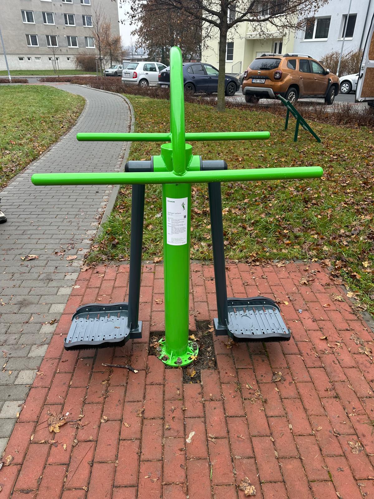 V ulici Sídliště Svornosti v Prostějově si můžete protáhnout tělo na venkovních fitness strojích určených k procvičování chůze, k posilování pasu a zvyšování koordinace končetin na elipsovitém zařízení.