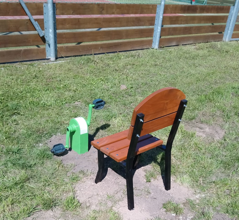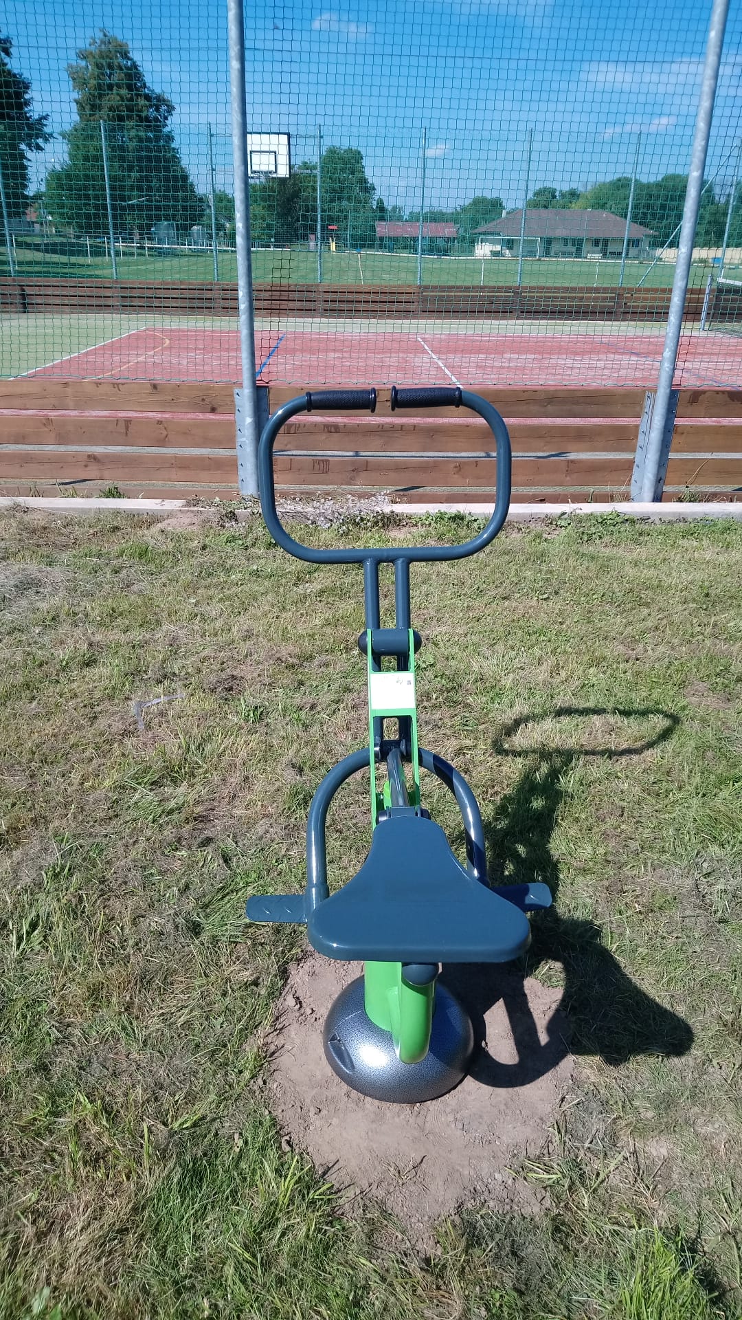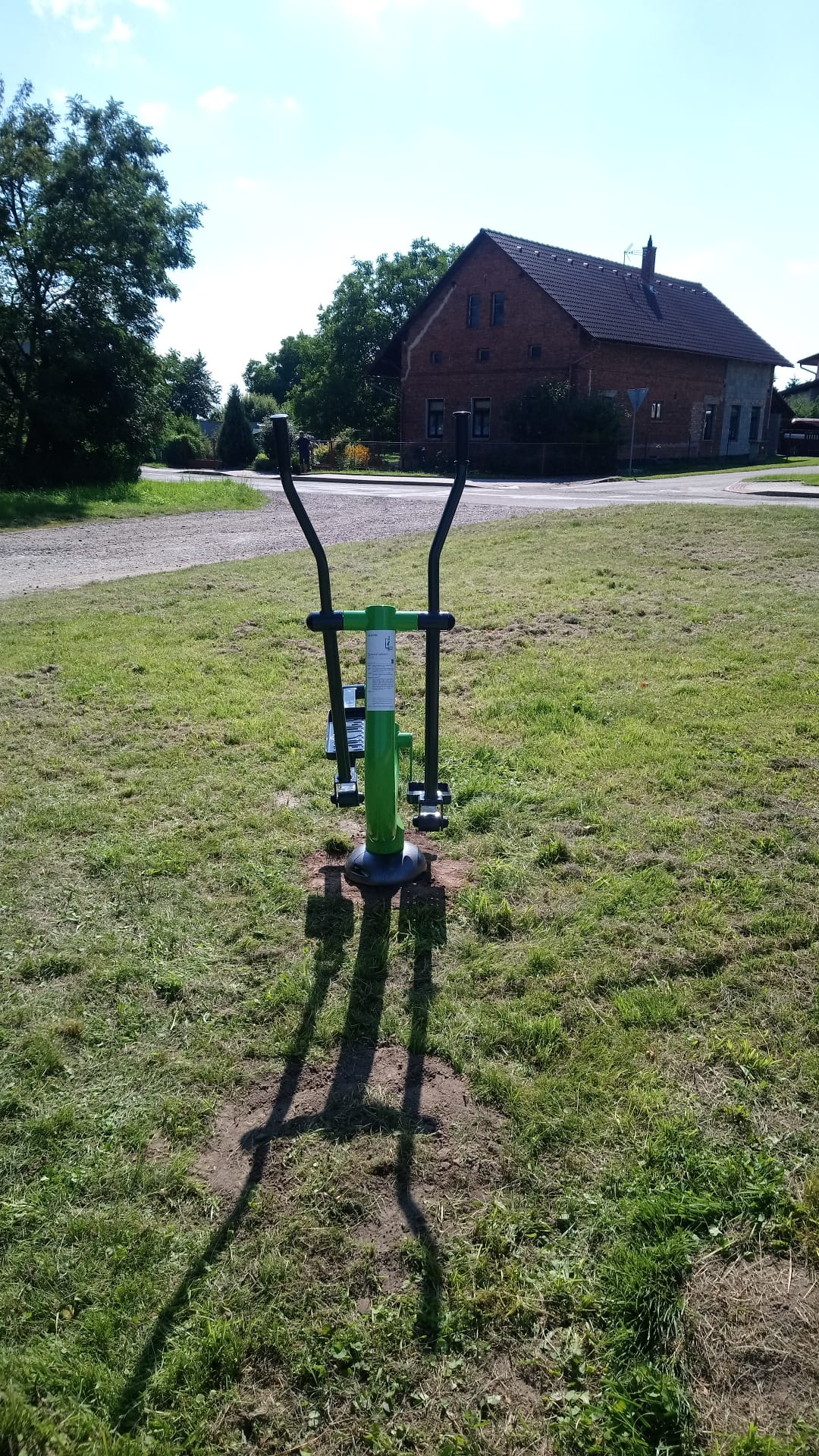 Celokovovou pevnou konstrukci, s barvou antracit/zelená, můžete vidět u fotbalového hřiště v Jeníkovicích.