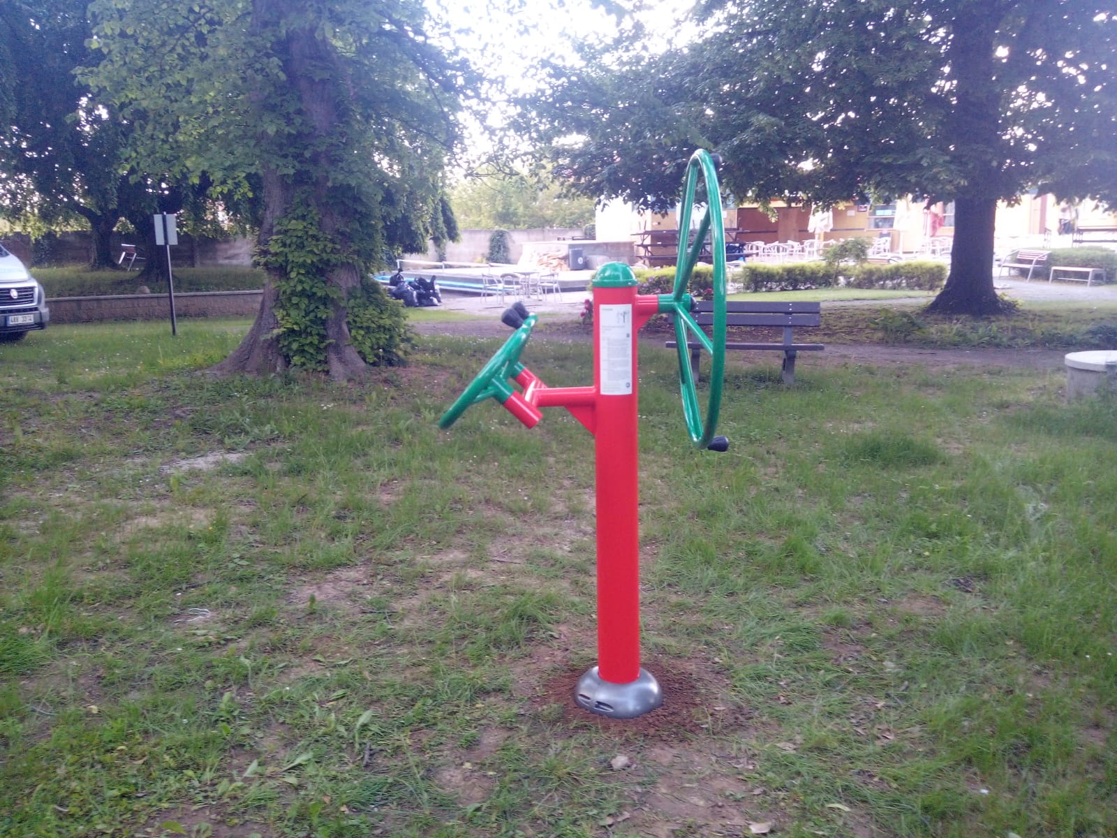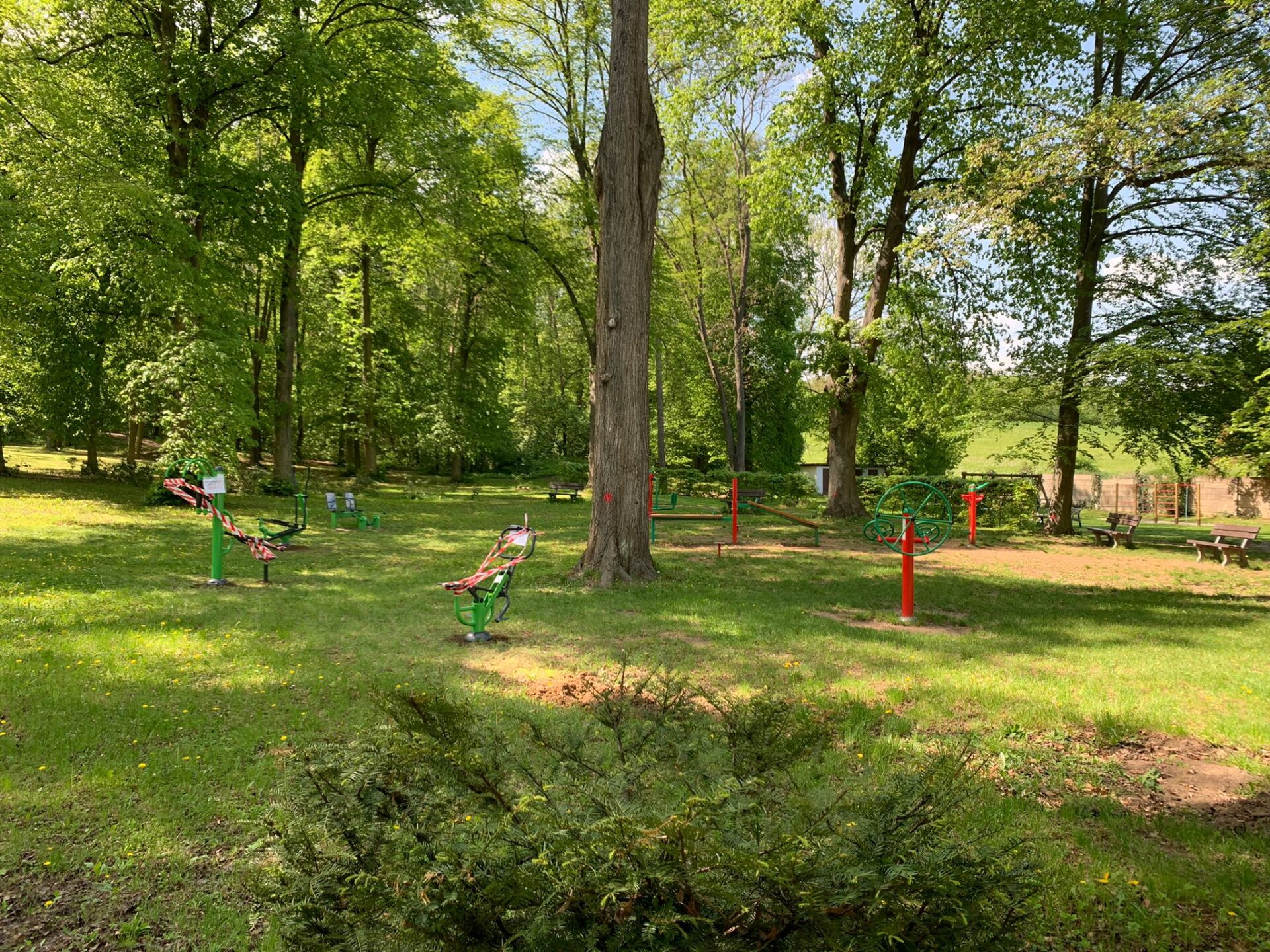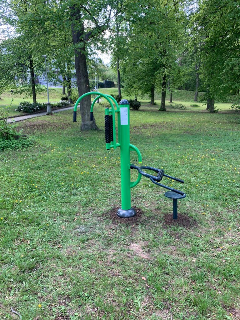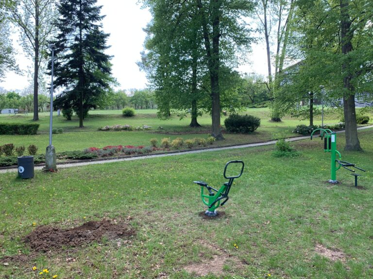 Venkovní fitness stroje můžete vidět v rozsáhlém parku v Lázních Slatinice. Park byl doplněn o nové prvky.