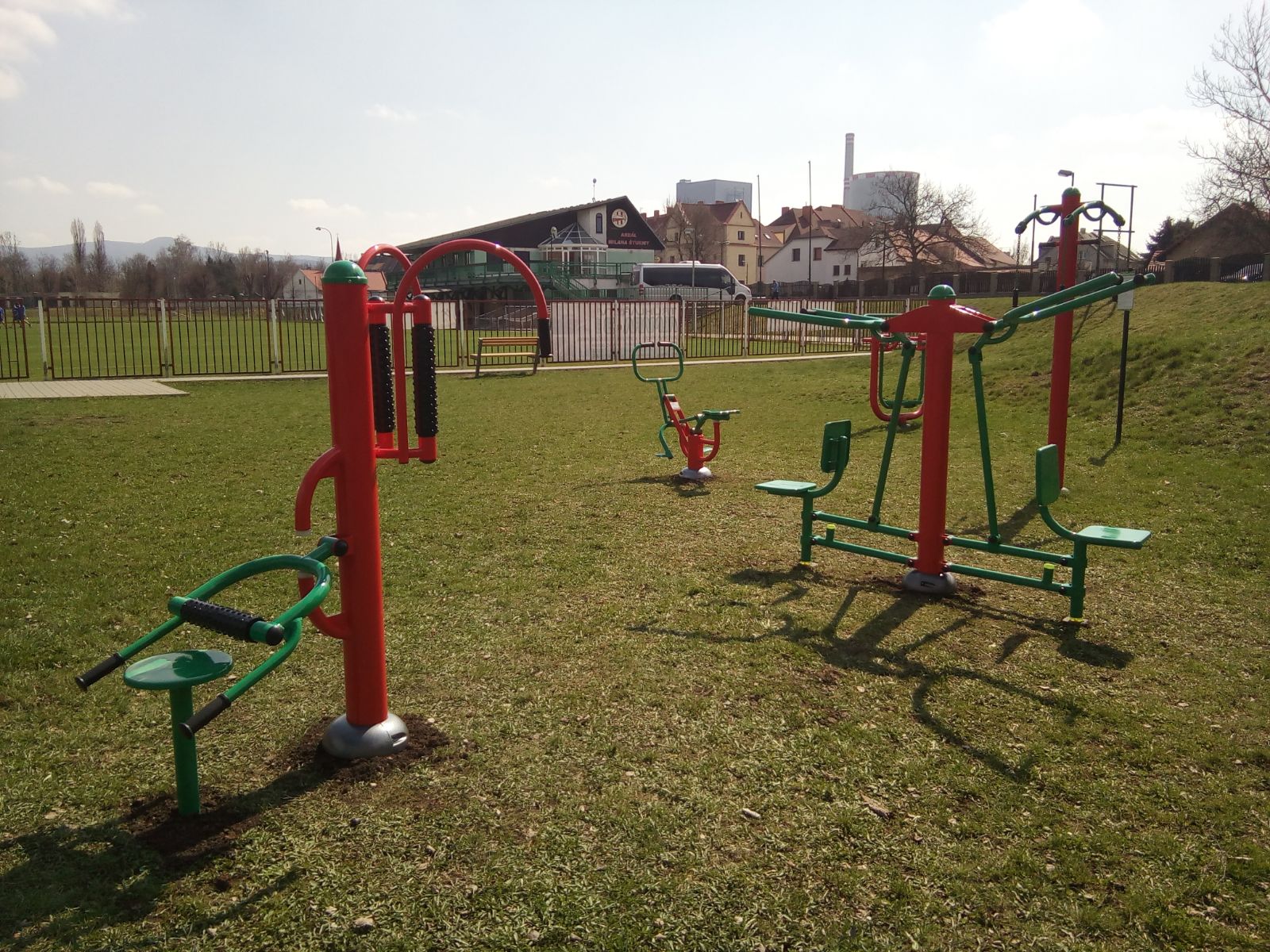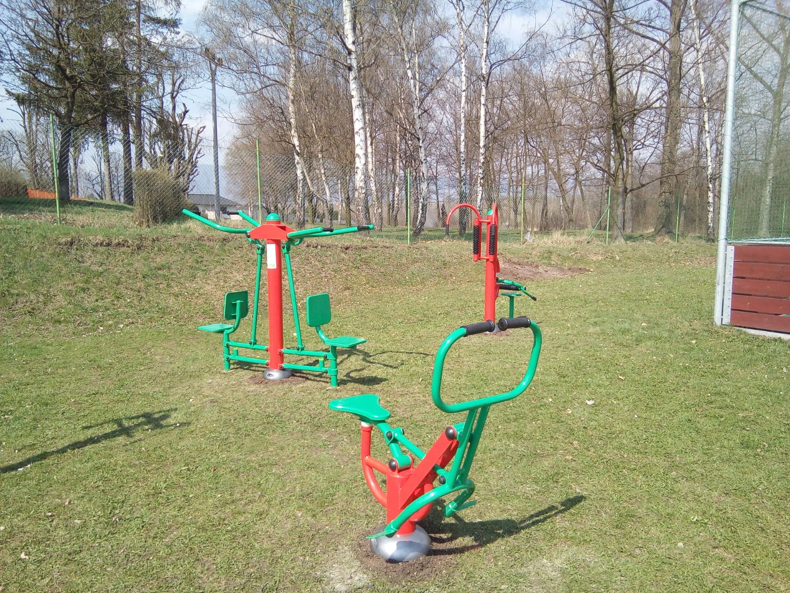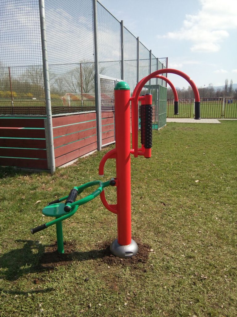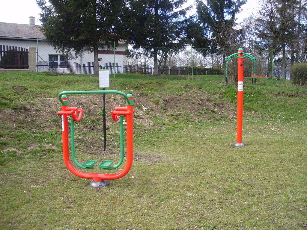 Venkovní fitness stroje jsou umístěny na víceúčelovém hřišti v Ledvicích.