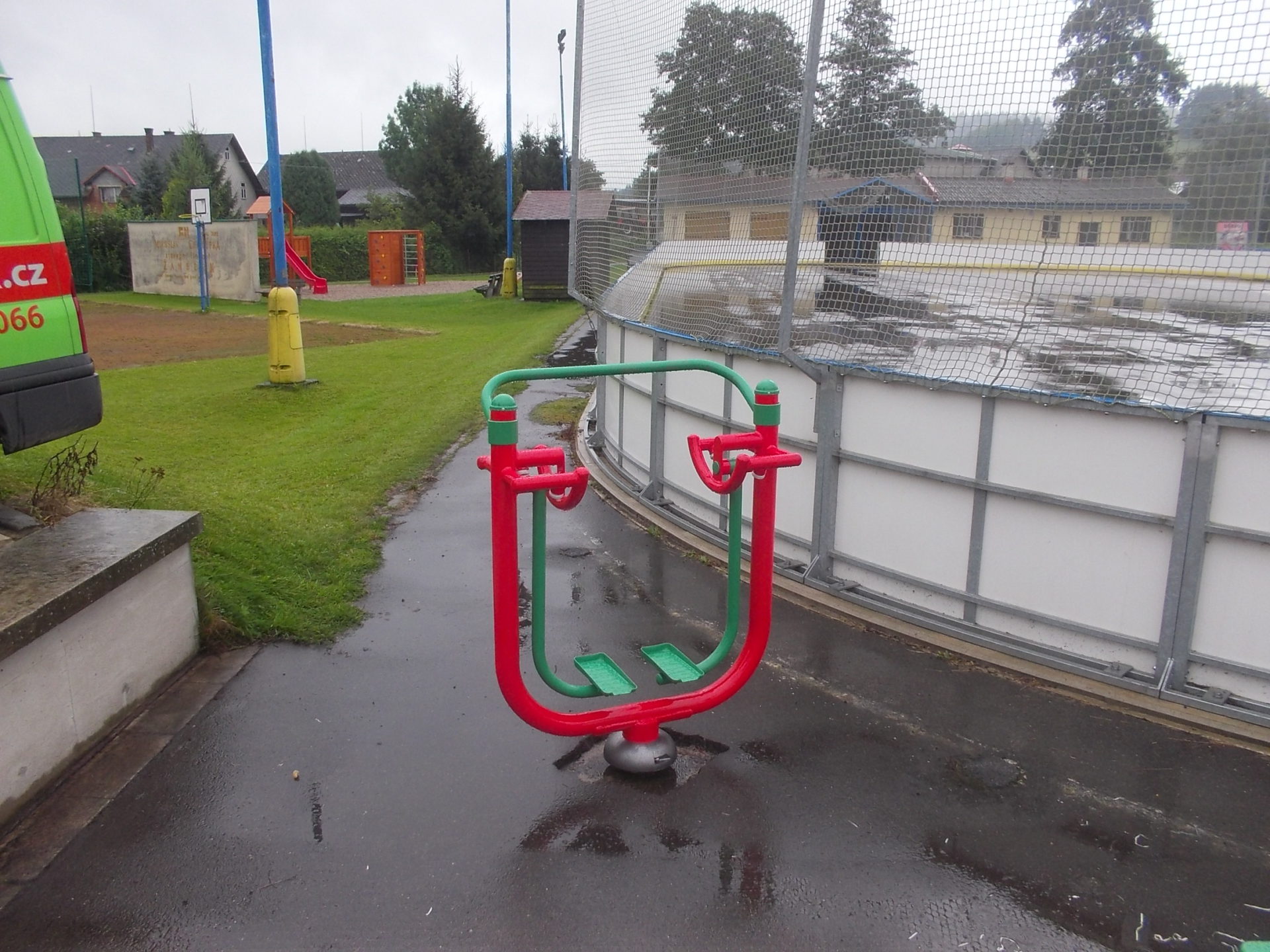 Venkovní fitness stroje v obci Dlouhoňovice.