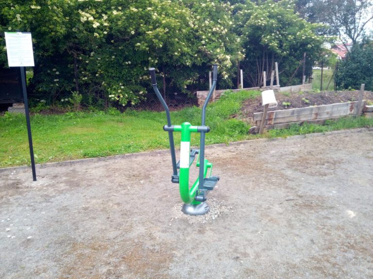 Venkovní fitness stroje, které se nacházejí na zahradě firmy, slouží pro posilování svalů končetin, ke zlepšování koordinace těla a zvyšování kapacity srdce a plic.