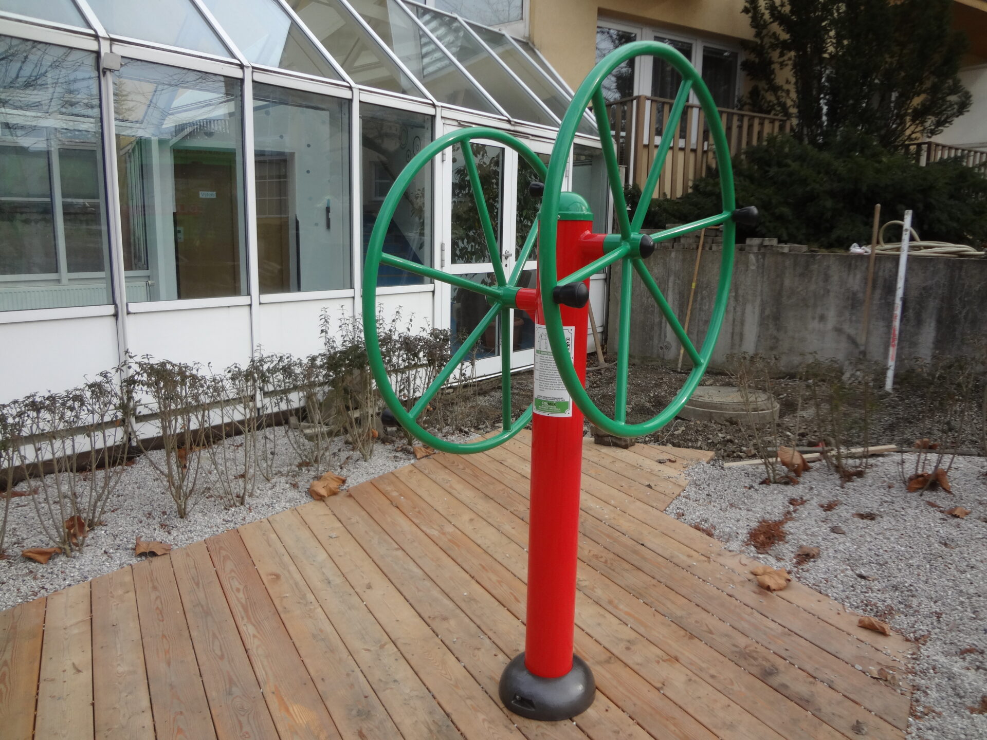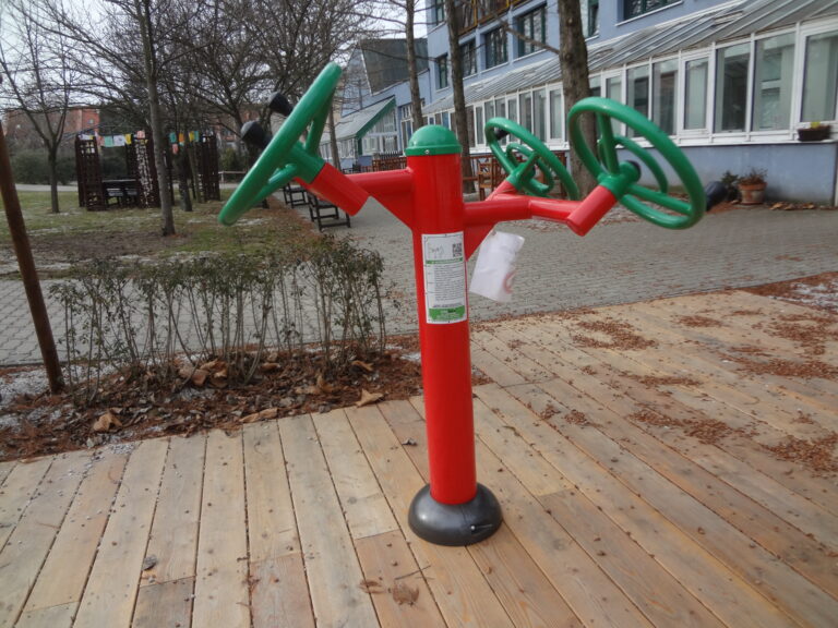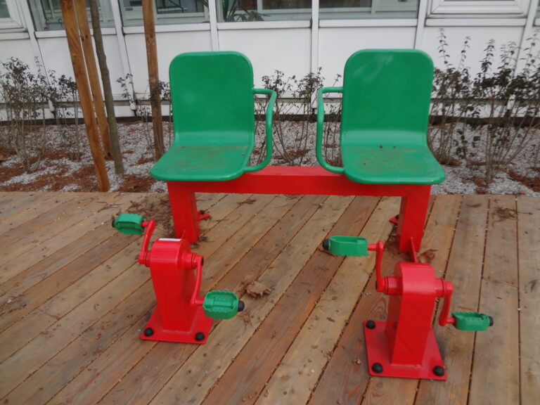 Venkovní fitness stroj, procvičování kloubů slouží k posilování, rozvoji a zlepšení svalů ramen. Zlepšuje celkovou ohebnost kloubů ramen, zápěstí, loktů a klíčních kostí. Šlapadlo dvojité s lavičkou posiluje lýtkové a stehenní svaly. Zlepšuje krevní oběh a koordinaci nohou.