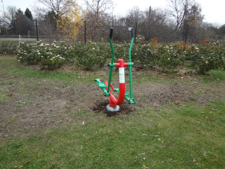 Prvek pro seniory byl umístěn do zahrady domu pro seniory, která slouží částečně jako relaxační zóna pro seniory, částečně jako hřiště pro děti mladšího školního věku. Místo umístěny bylo vybráno i zdůvodu možného využívání strojů maminek s dětmi.