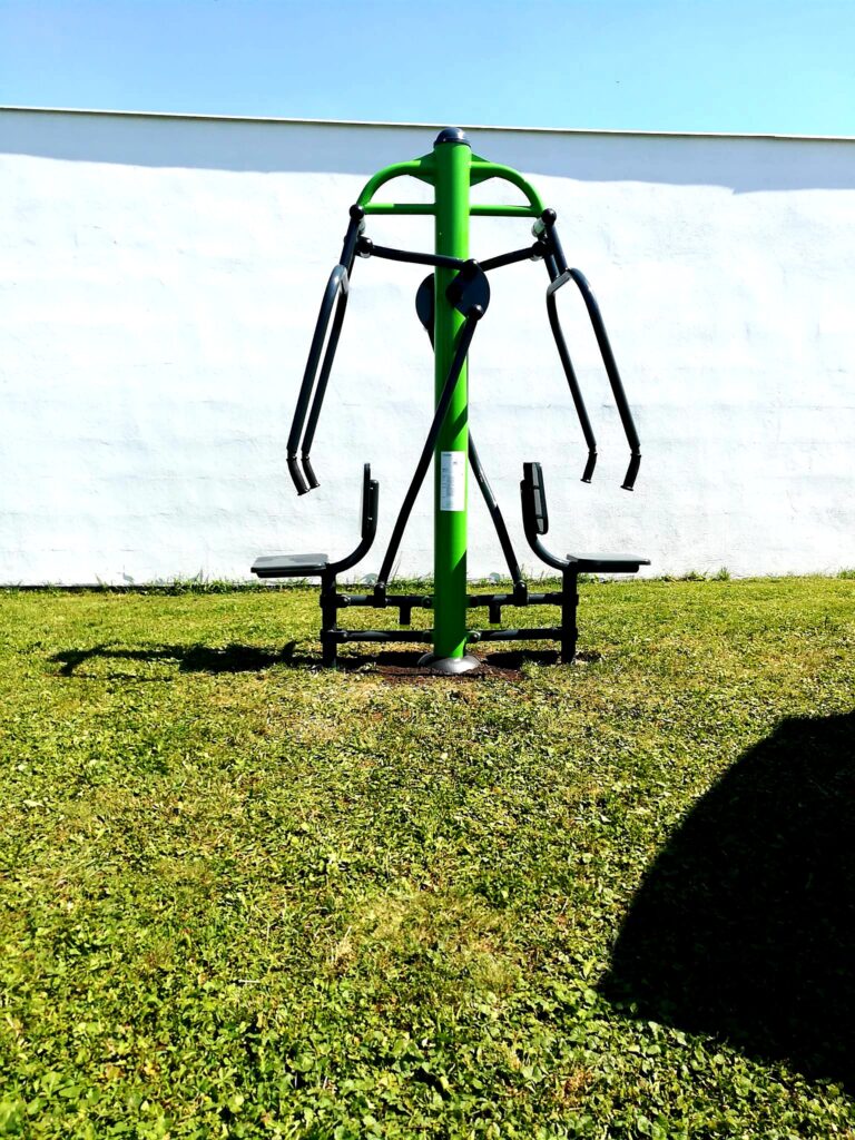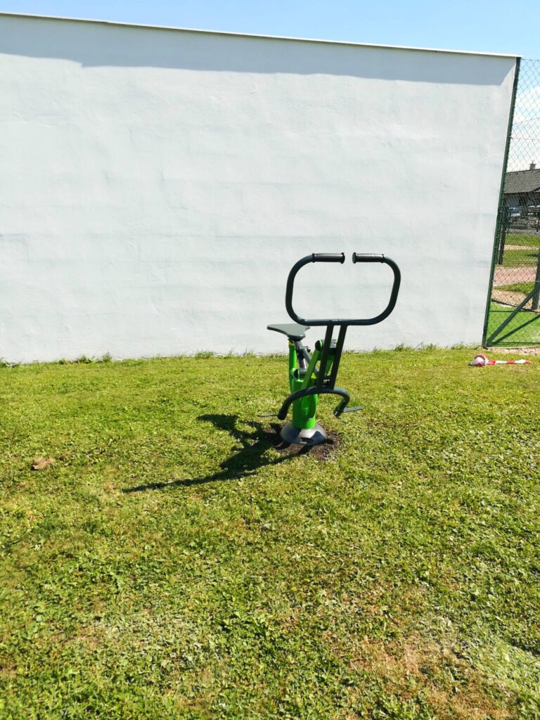 Pro tuto obec jsme vybudovali tři venkovní fitness stroje: procvičování chůze, jezdecké zařízení, posilovací bench.