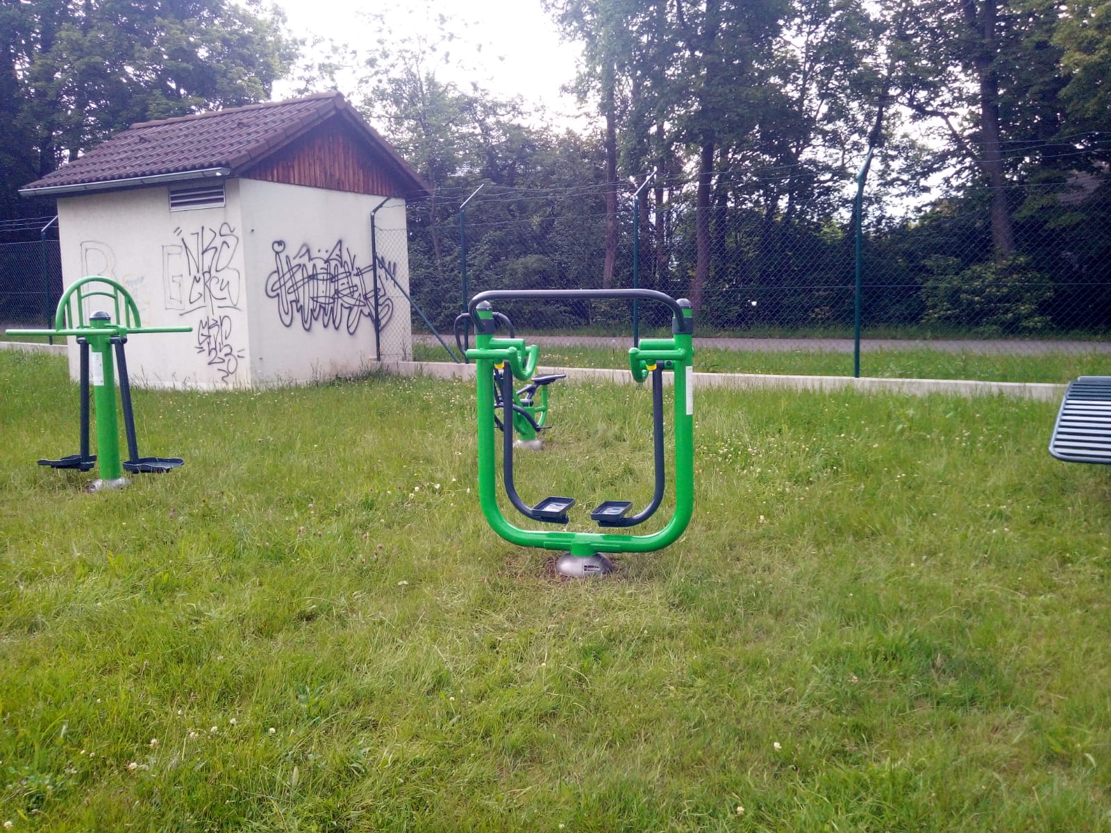 Venkovní fitness stroje, které se nacházejí na sportovišti v ulici Letenská, slouží pro posilování svalů končetin, ke zlepšování koordinace těla a zvyšování kapacity srdce a plic.