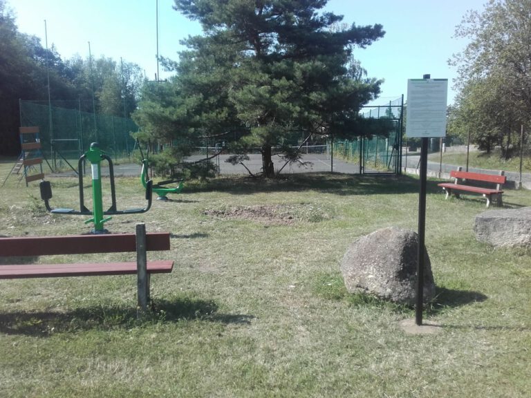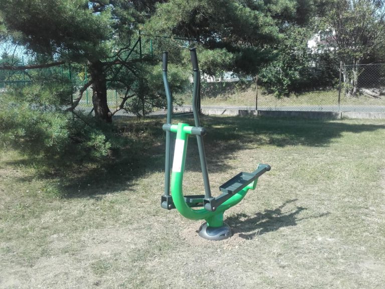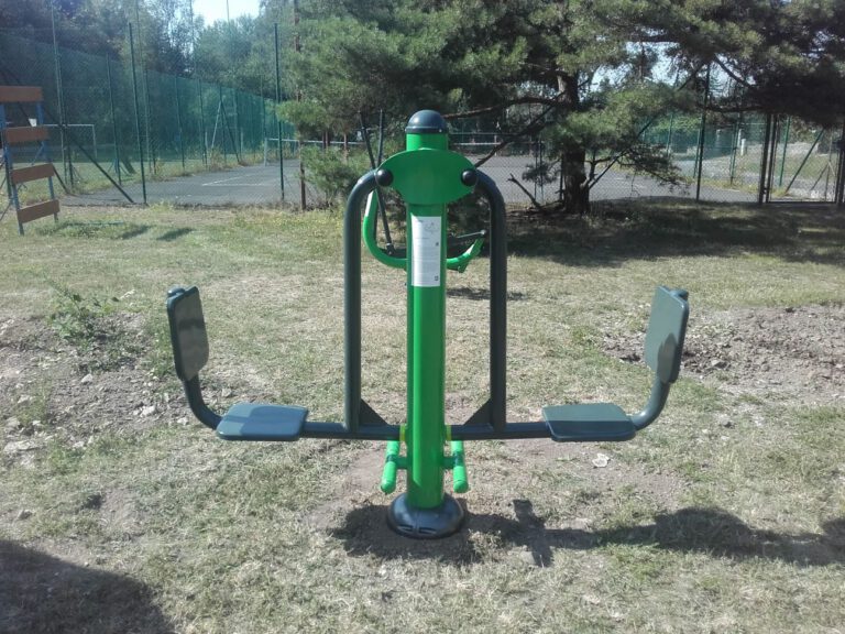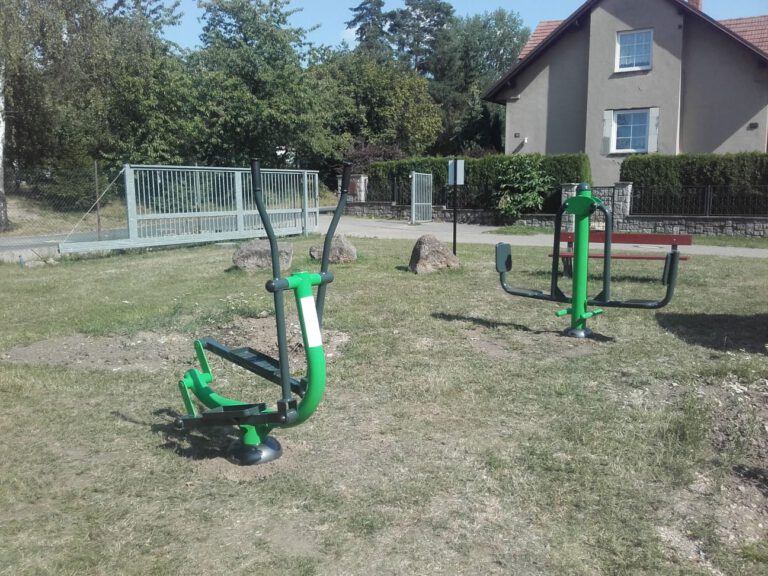 Venkovní fitness stroje v obci Tehovec pro zvyšování pohyblivosti kloubů končetin a posilování svalů nohou.