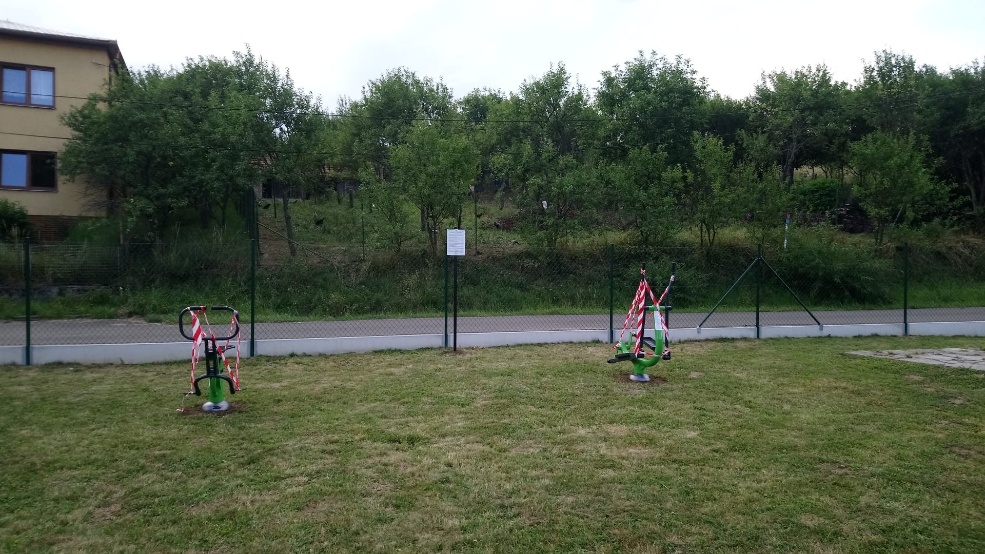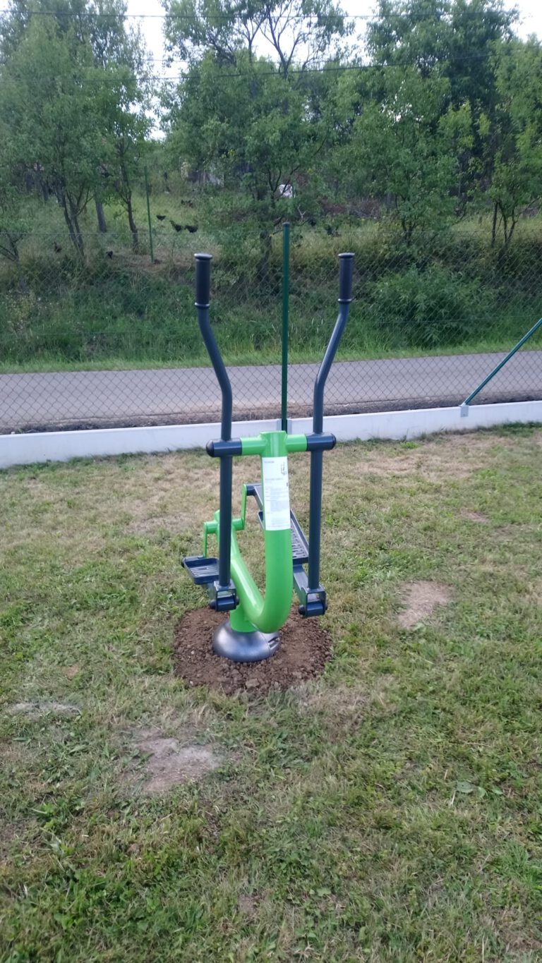 Venkovní fitness stroje se nacházejí v blízkosti obecního úřadu.