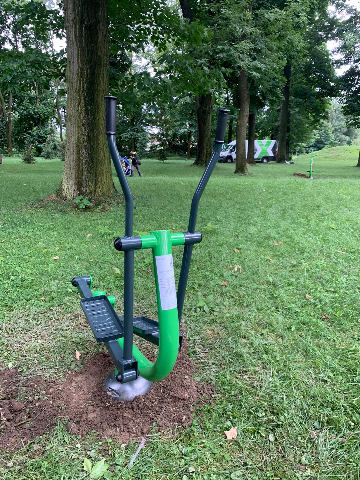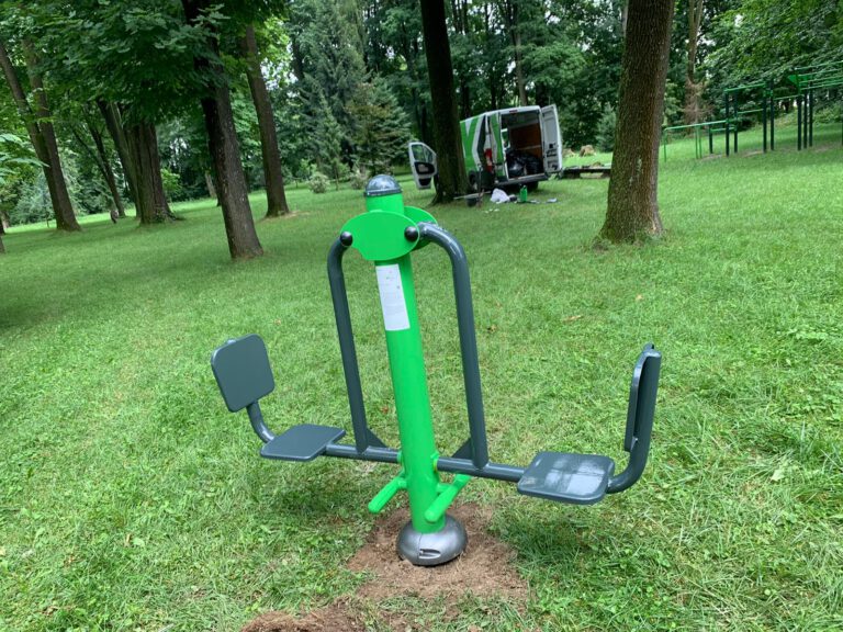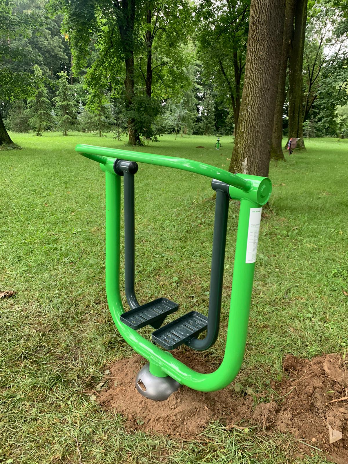 K této sestavě jsme přidali i venkovní fitness stroje pro rozvoj a posilování svalů nohou, zvyšování pohyblivosti dolních končetin.