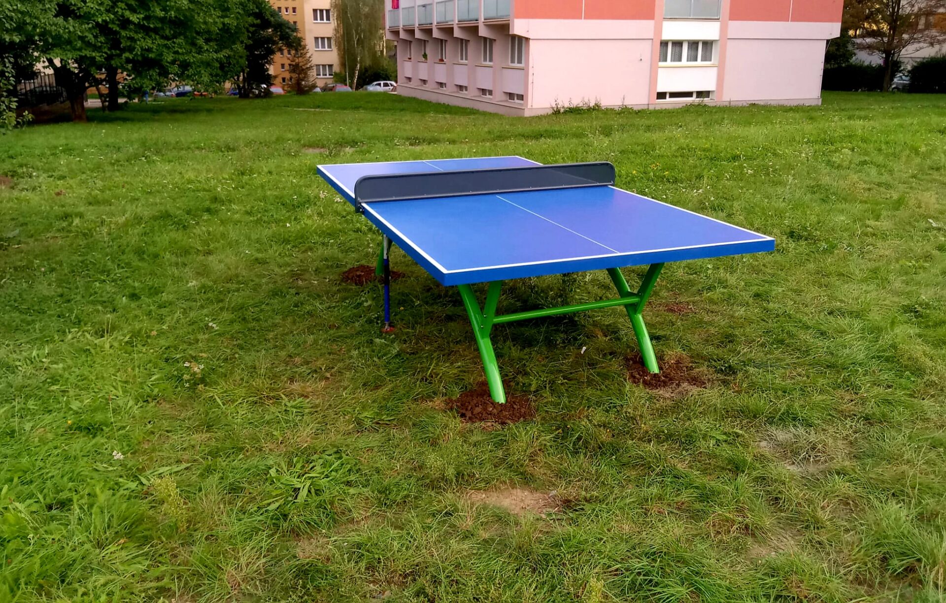 Pro zdejší cvičence jsme vybudovali pět venkovních fitness strojů a také pingpongový stůl pro kolektivní hru.
