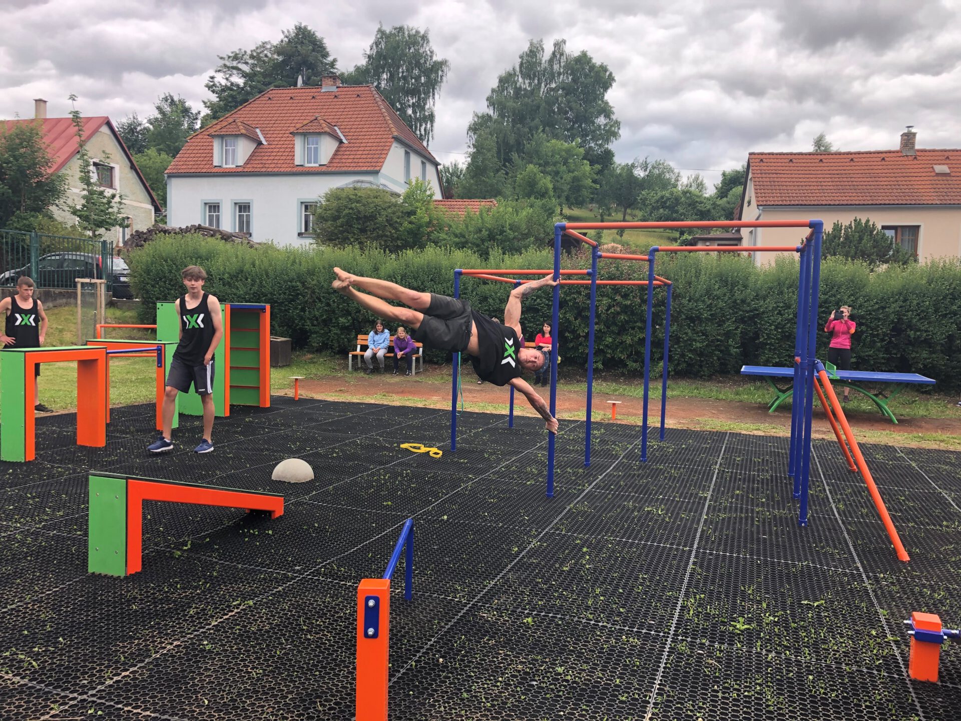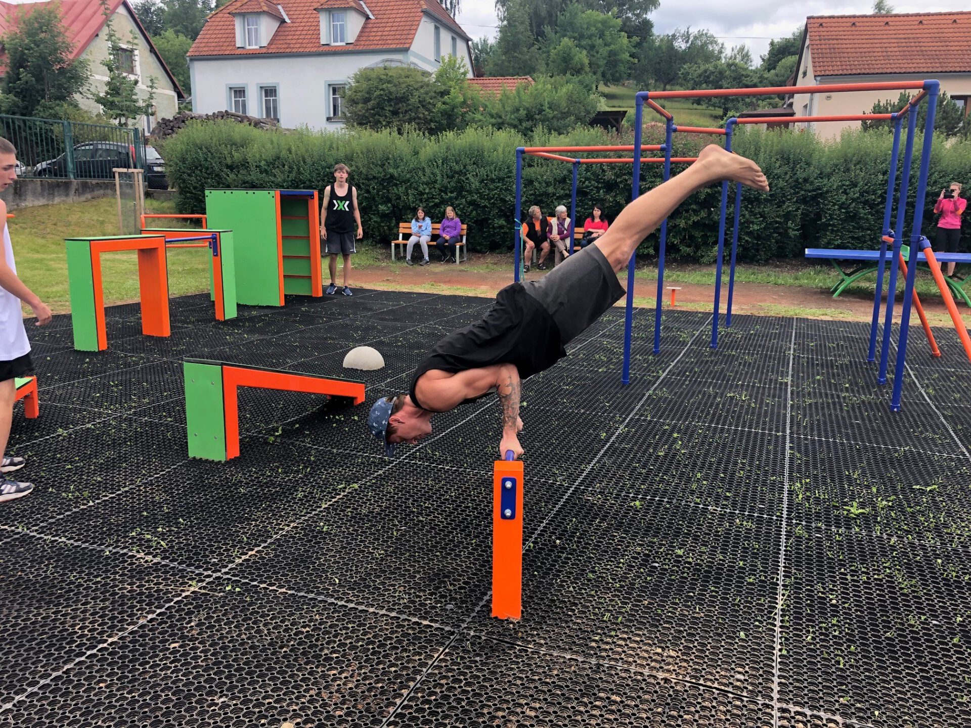 Parkourová řada se vyrábí v provedení v kombinaci materiálů kovu a polyethylenu. Exklusivní tvar konstrukce a protiskluzová úprava desek zaručují maximální požitek při cvičení. V Hořicích na Šumavě jsme pro Vás vybudovali fitpark: workoutové a parkourové prvky, protahovací zařízení, jezdecké zařízení, surfovací zařízení, procvičování chůze, stolní tenis, hrazda, kruhy a parkourovou lavičku.
