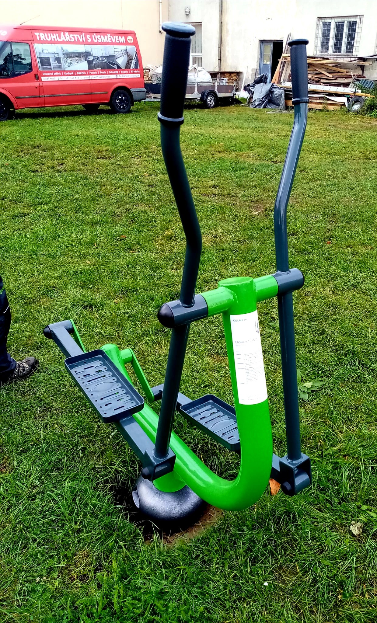 Celokovová konstrukce v barevné kombinaci, která evokuje přirozenost a harmonii. Fitpark v tónech zelené a tmavě šedé barvy podtrhne přírodní prostředí.