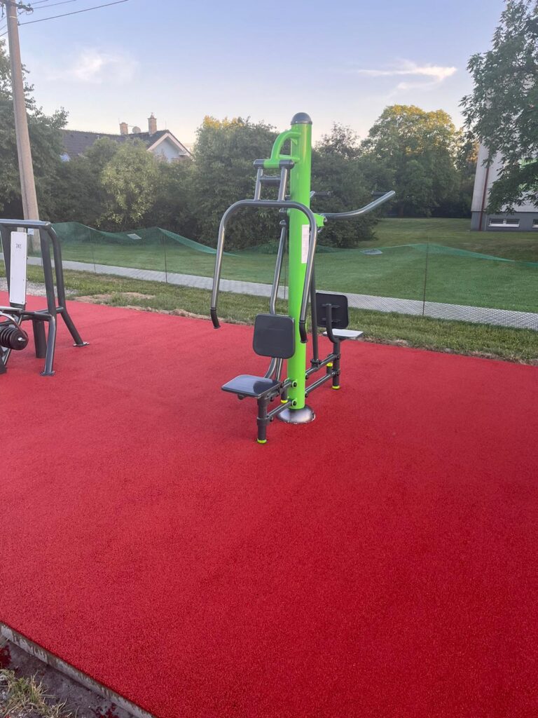 Vybudovali jsme zde pro místní obyvatele hřiště se dvěma venkovními posilovacími fitness stroji GXC se zátěží.