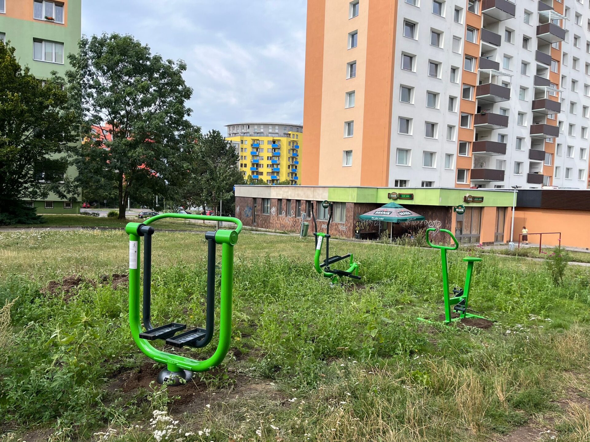 Na Praze 12 v ulici Zvolská si můžete protáhnout tělo na třech fitness strojích určených k procvičování chůze, k posílení a zvyšování koordinace těla, k procvičování dolních končetin a pro efektivní kardiovaskulární cvičení.