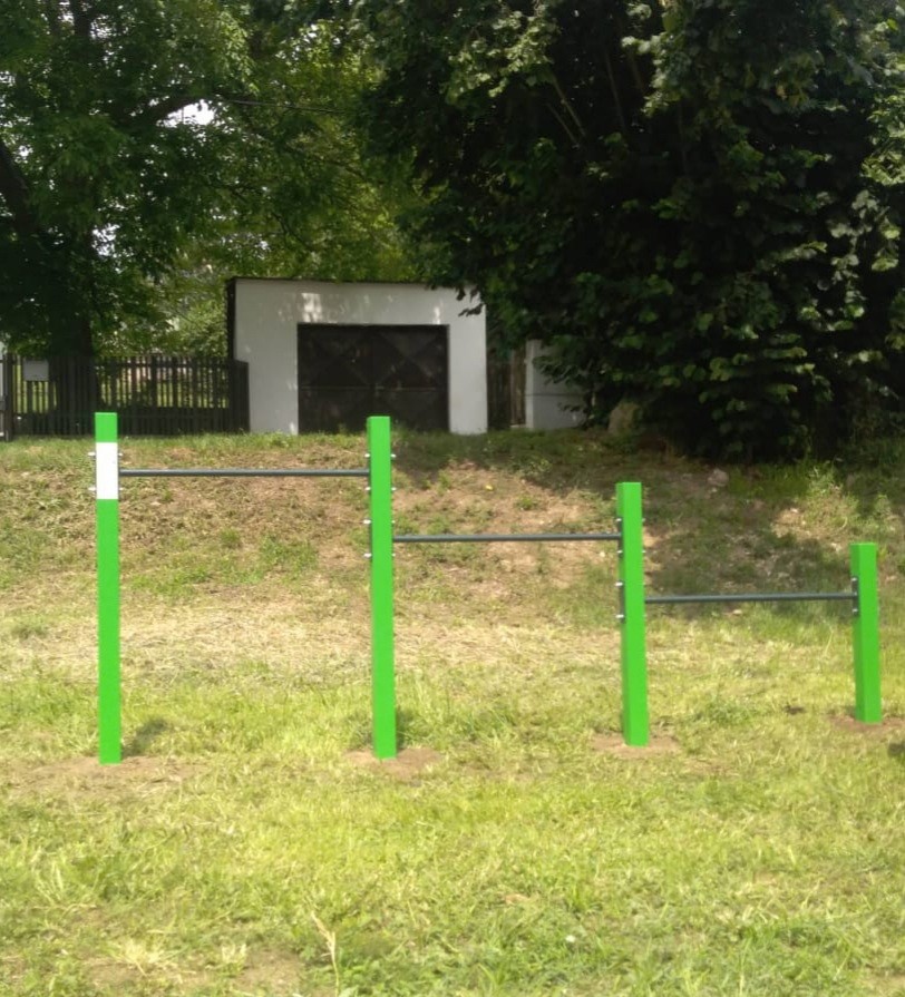 Jsme u fotbalového hřiště měli možnost vytvořit workoutovou sestavu s venkovními fitness stroji.