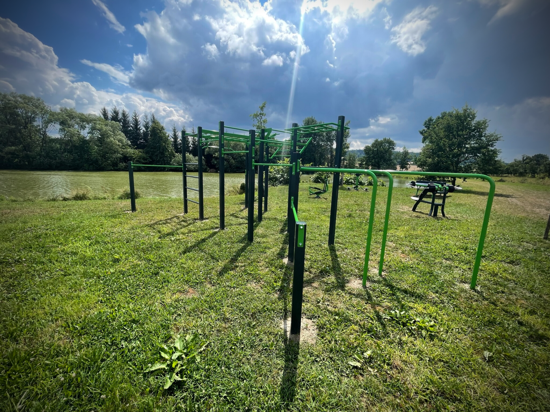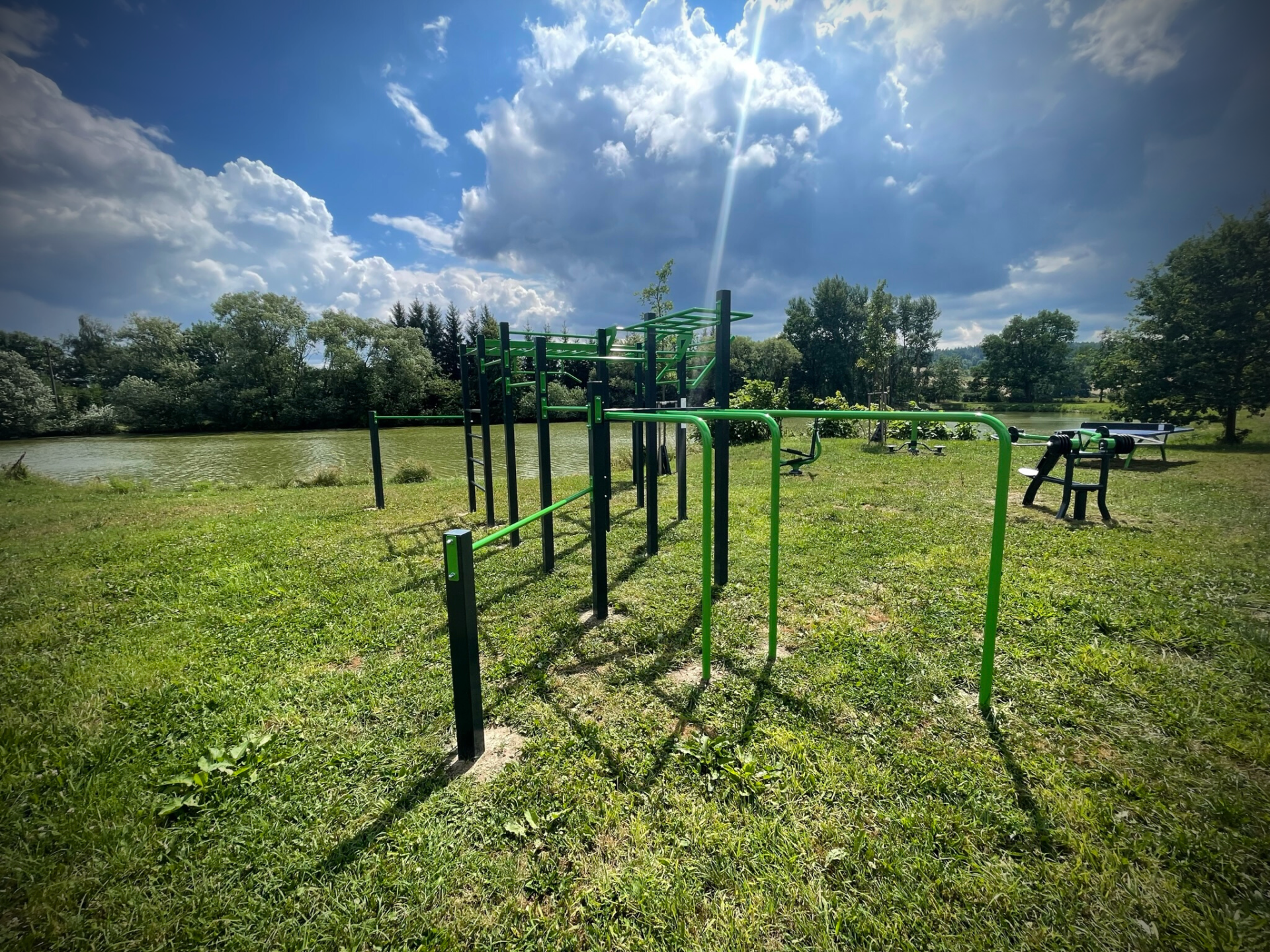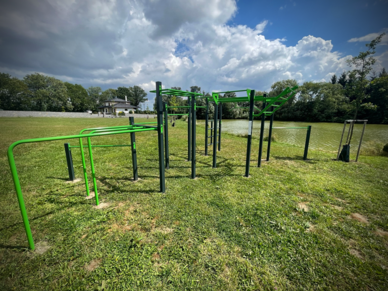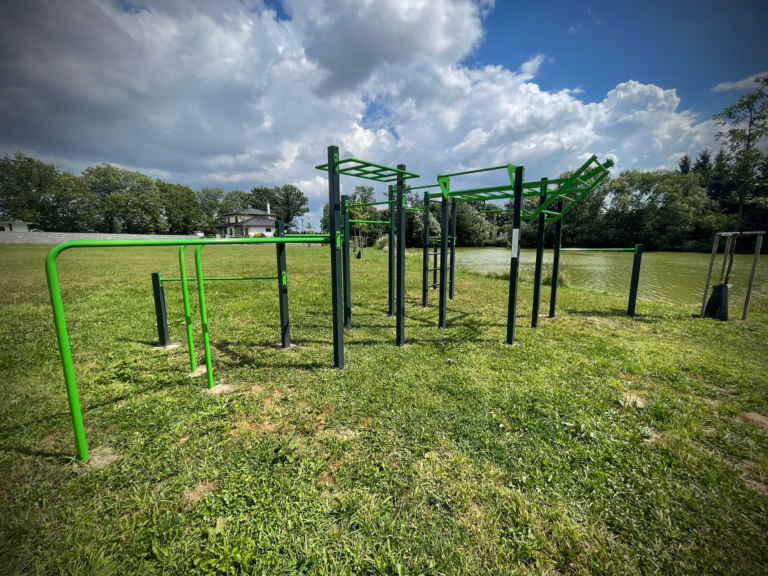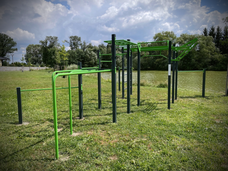 Zde si můžete protáhnout celé tělo a zacvičit nejen na workoutové sestavě, ale také na stroji GXC – posilovacím stroji, tlaky na ramena.