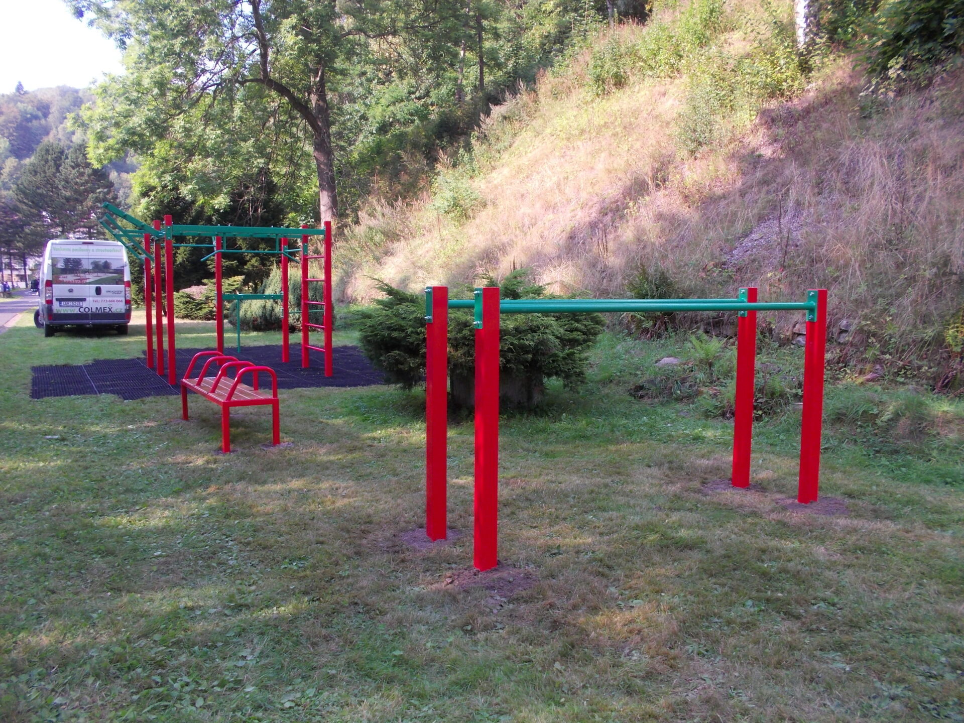 Zde si můžete zacvičit na hrazdě a výběr máte i z mnoha venkovních fitness strojů.