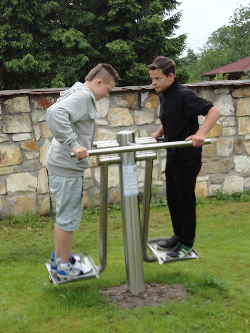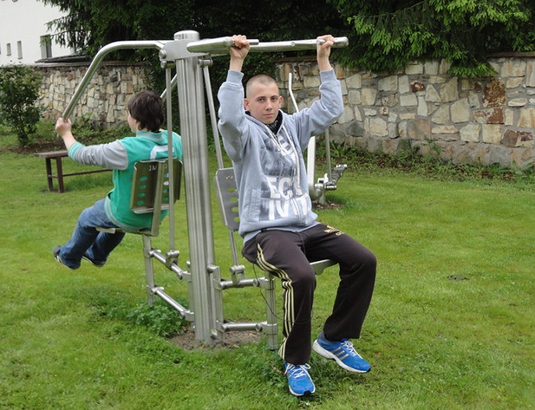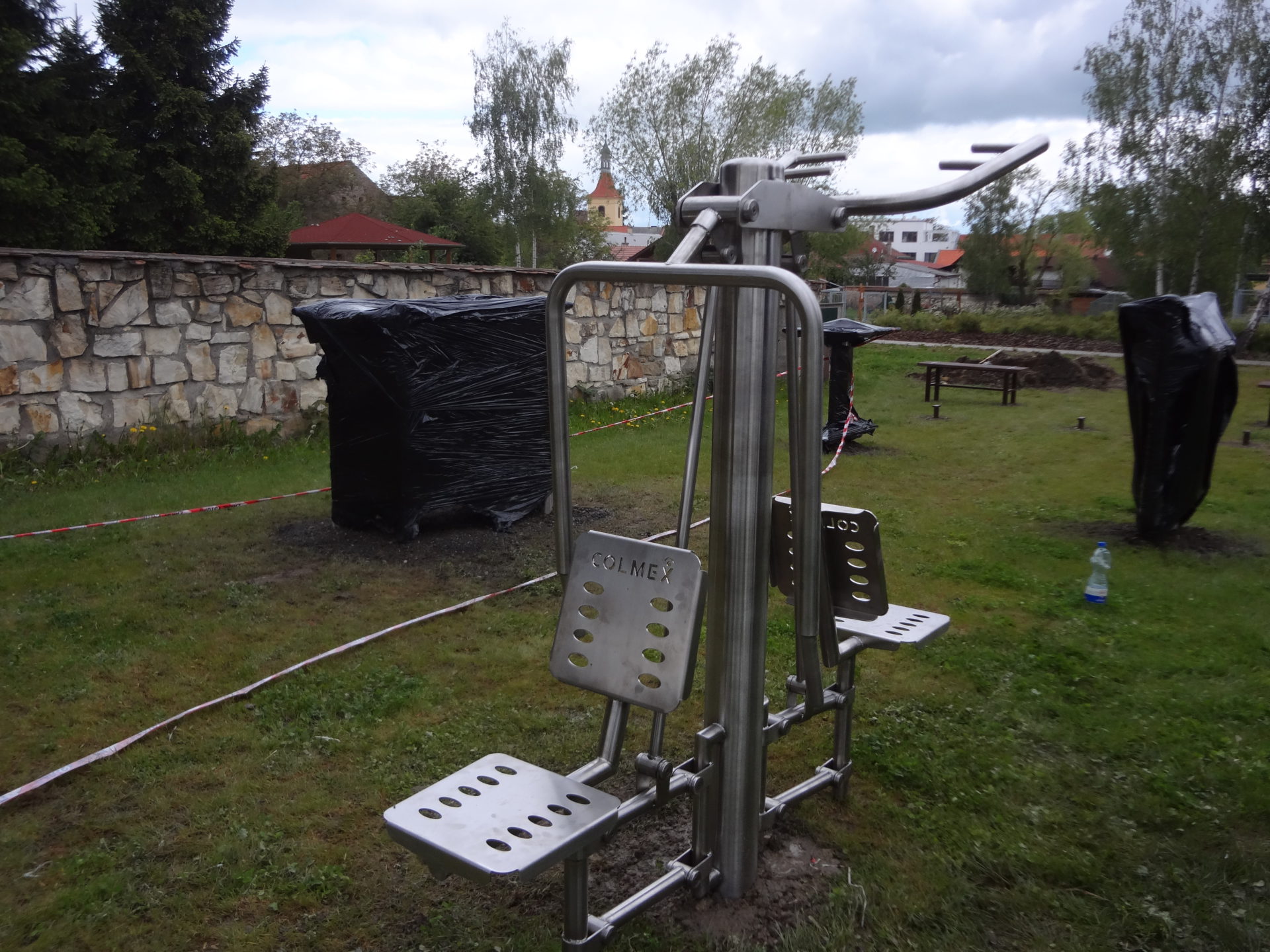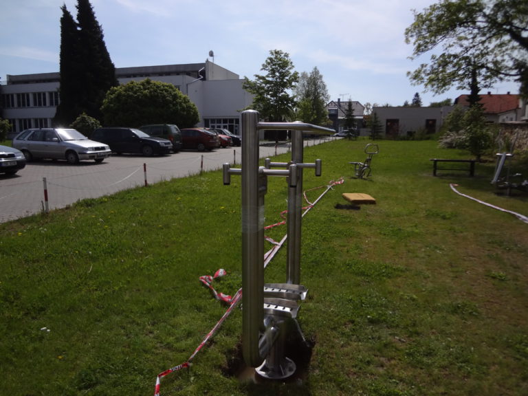 Fitpark v areálu Základní školy v Kostelci nad Černými lesy nabízí možnost využití šesti posilovacích strojů z nové celonerezové řady.