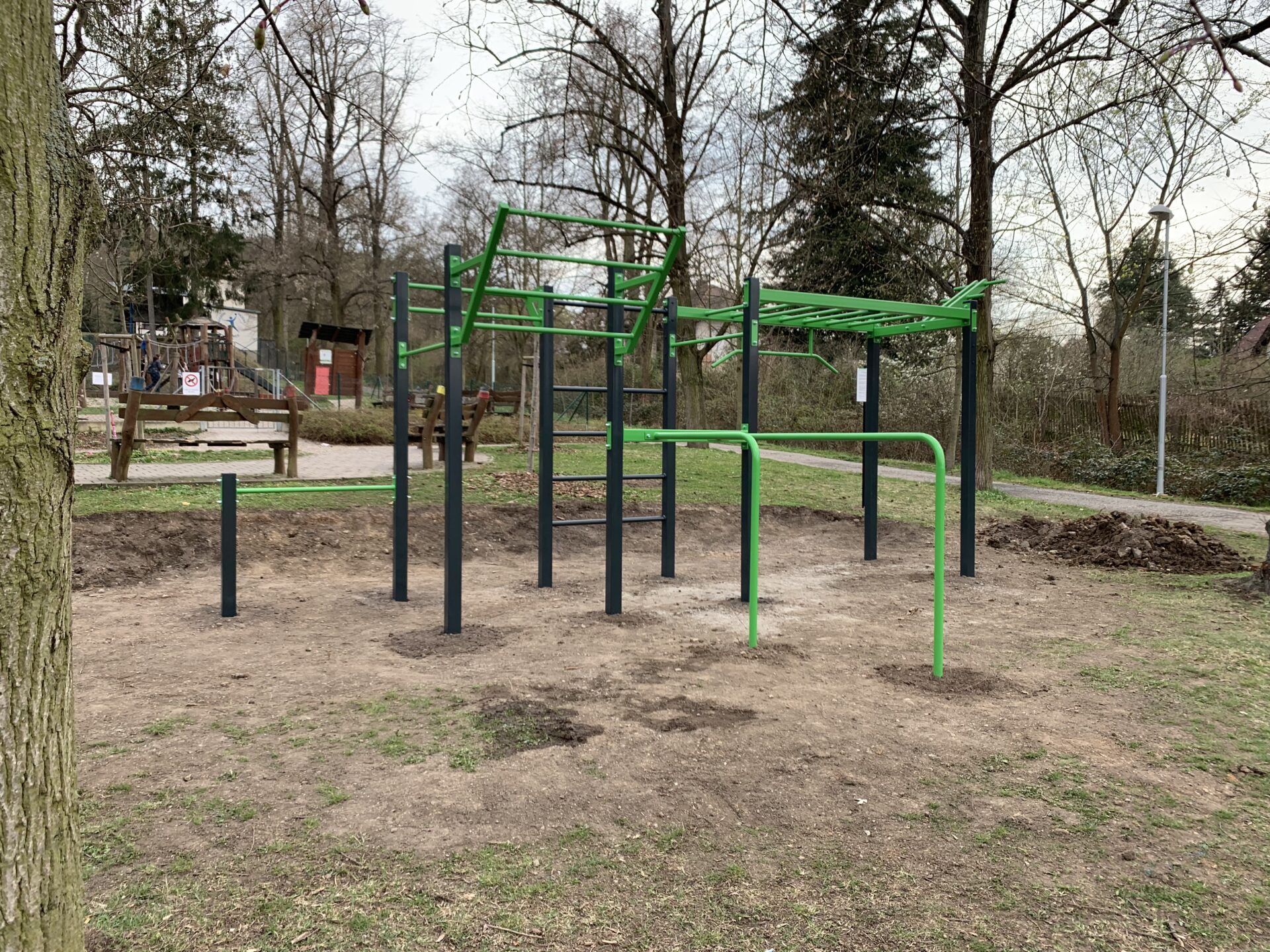 Workoutové hřiště se sestavou, která perfektně snoubí všechny prvky workoutového cvičení se nachází v Řevnicích, v ulice Sportovní poblíž dětského hřiště Pod házenou.