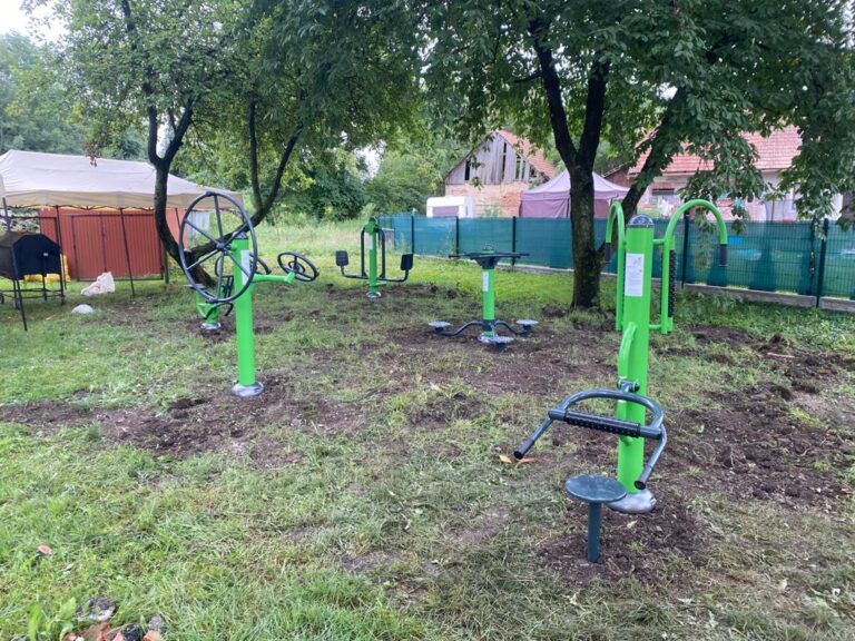 Zde si můžete zacvičit na venkovních fitness strojů: Procvičování ramen a kloubů, masážní zařízení, šlapací zařízení, procvičování pasu a Jezdeckém zařízení.