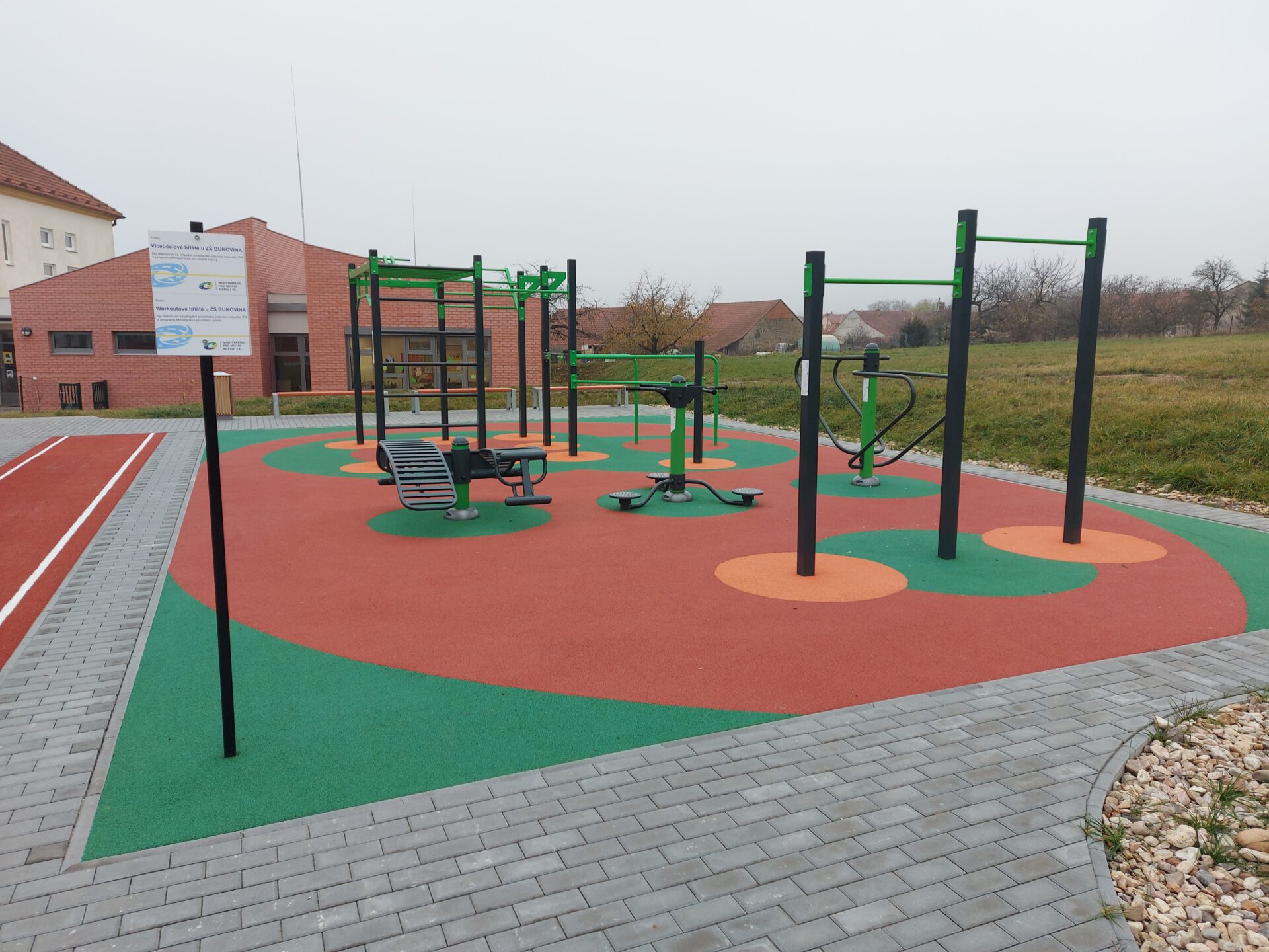 Vedle ZŠ Bukovina si můžete zacvičit na workoutovém víceúčelovém sportovním hřišti.