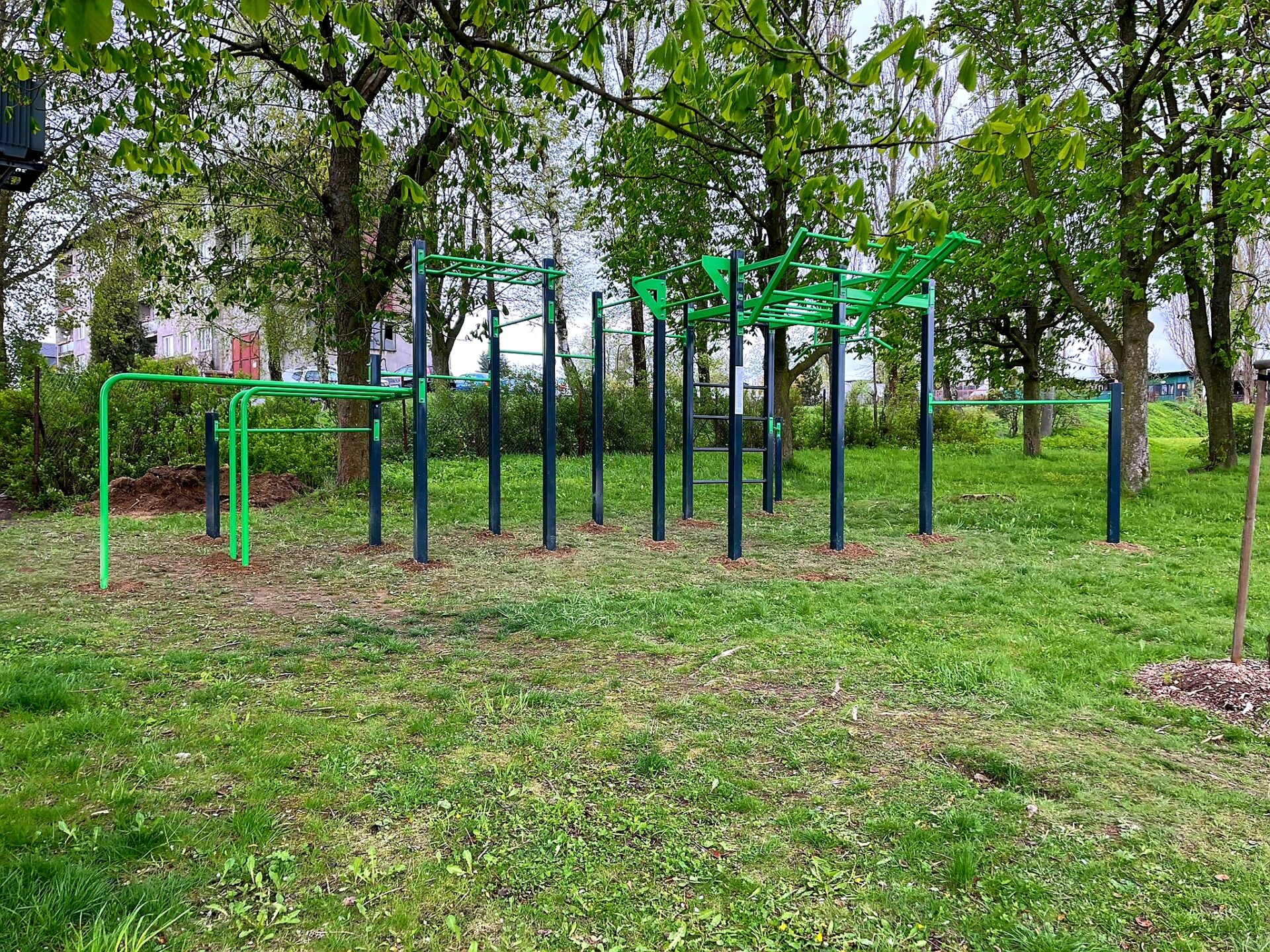 Sestava obsahuje následující workoutové segmenty: soustavu hrazd v různých výškách, boční hrazdy, hrazdu podvěšenou, hrazdu střední, vodorovný, svislý a šikmý žebřík, trojitá bradla, multifunkci (slouží pro zavěšení kruhů, systému TRX aspod.) a spletenec. Ve standardní nabídce máme zeleno-antracitové nebo antracitovo-zelené provedení. Máte možnost objednání barvy i dle vlastní specifikace.