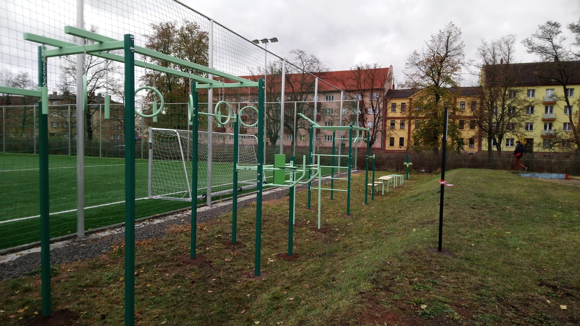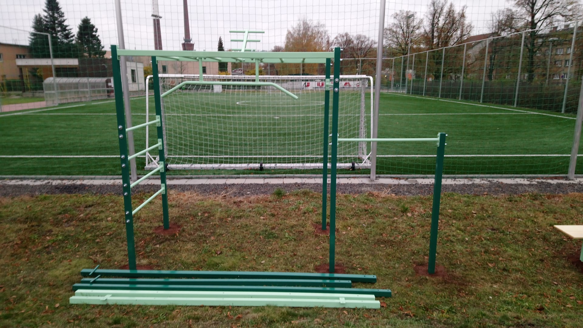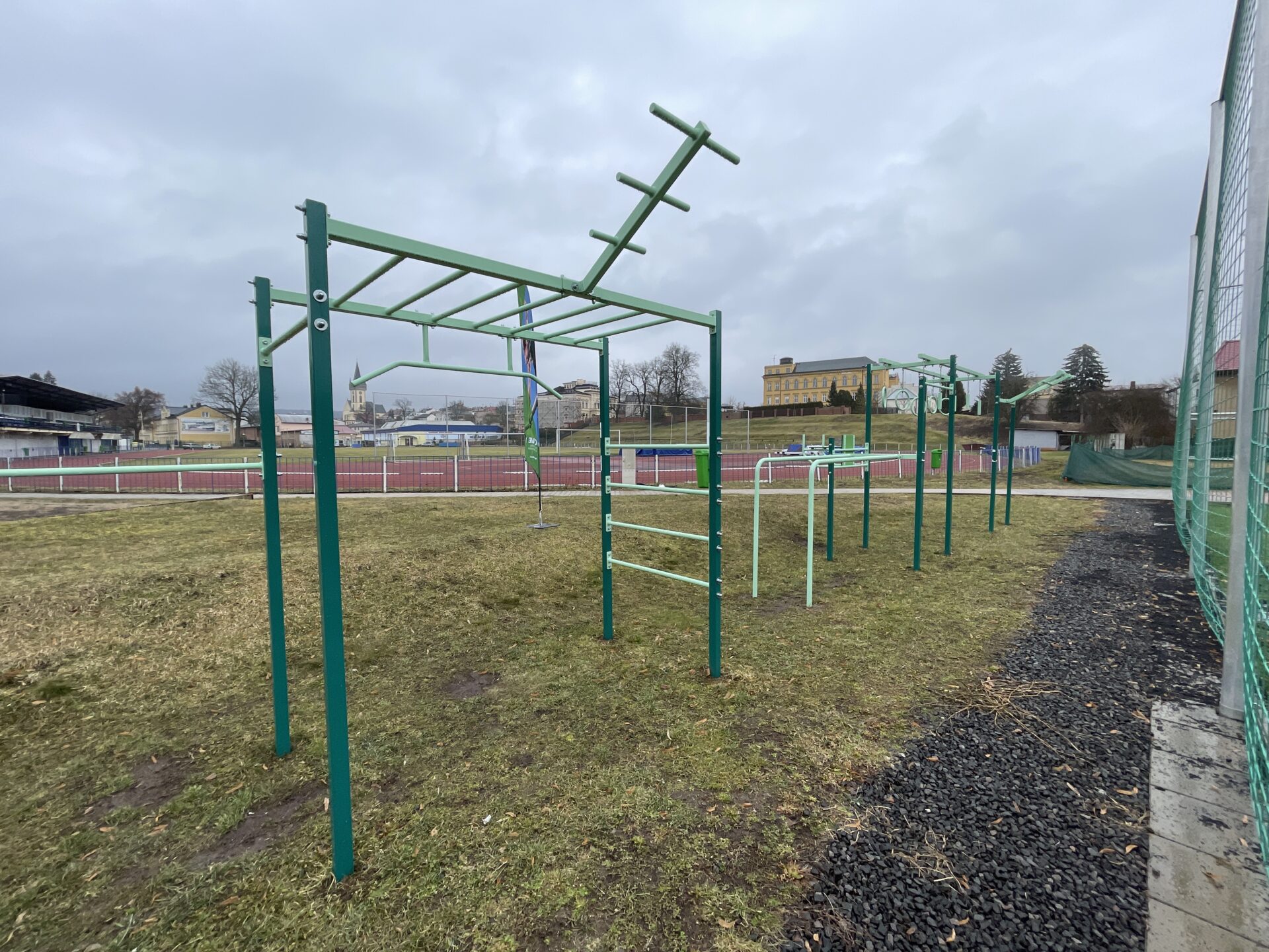 A-typová workoutová sestava na přání je postavena na městském stadionu. Workoutové sestavy můžete různě kombinovat, propojovat do různých velikostí a tím dosahovat i jejich potřebné funkčnosti. Naše nabídka obsahuje až 50 modulů a další street workout prvky v příslušenství.