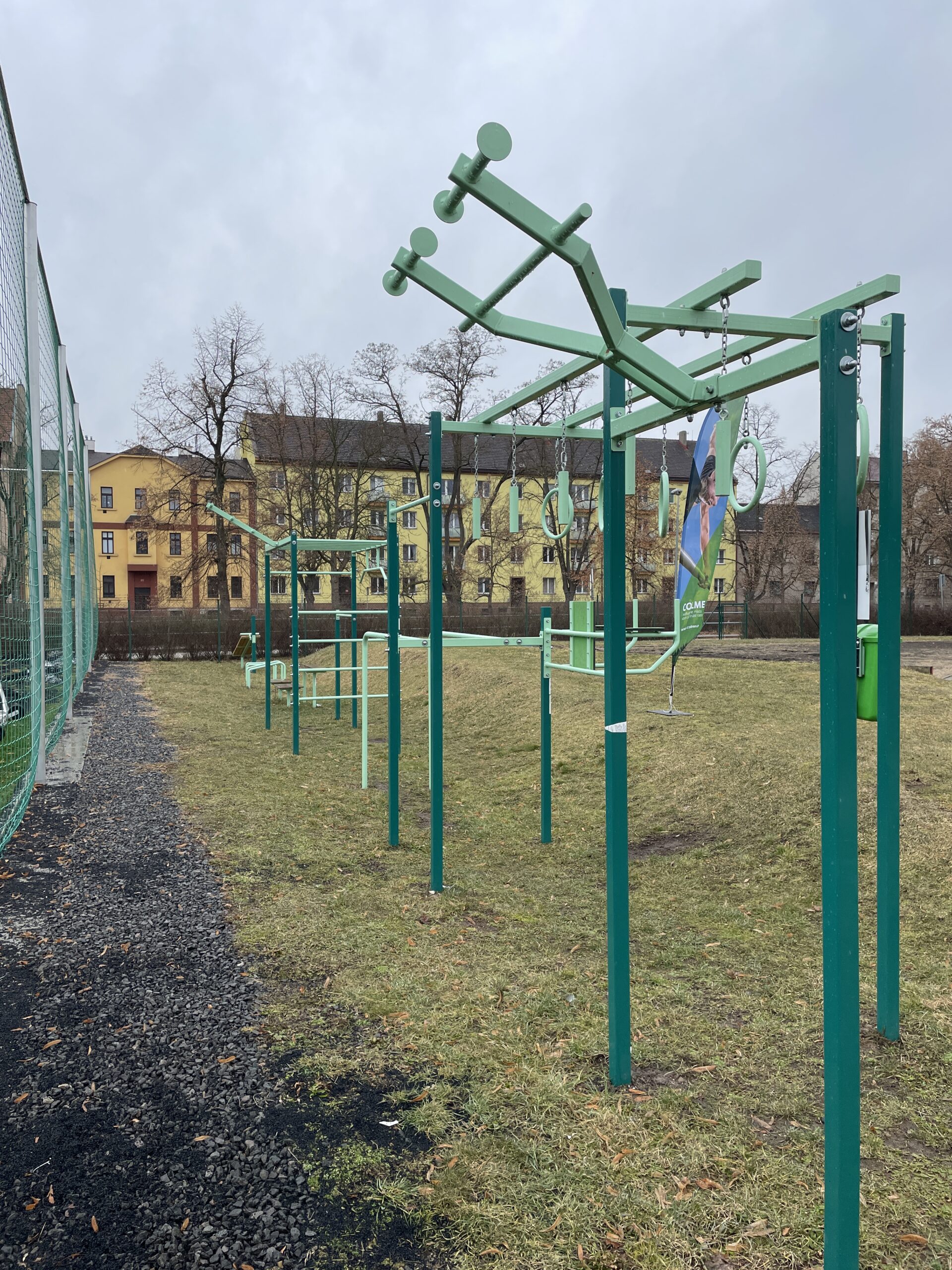 U této sestavy, na které si zacvičí opravdu každý, najdete jak hrazdy, stálky umístěné na zemi, tak i kruhy s opičí dráhou. U hřiště je mnoho parkovacího prostoru a pro pěší je tu také nedaleká autobusová zastávka.