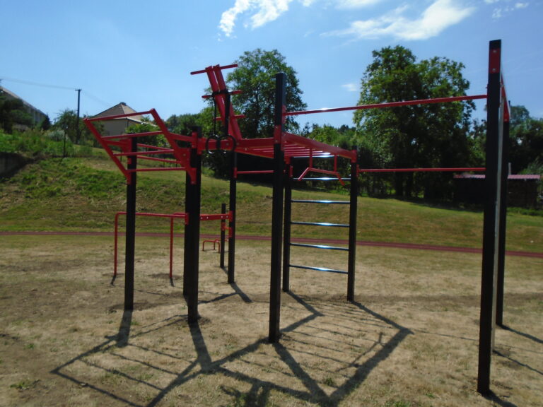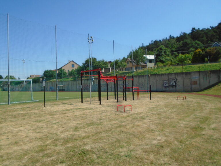 Zde jsme vybudovali venkovní workoutovou sestavu, která obsahuje následující segmenty: jednoduchou hrazdu, boční hrazdu, hrazdu podvěšenou, hrazdu střední, vodorovný, svislý a šikmý žebřík, dvojitá bradla a multifunkci (slouží pro zavěšení kruhů, systému TRX aspod.). Ve standardní nabídce máme zeleno-antracitové nebo antracitovo-zelené provedení. Máte možnost objednání barvy i dle vlastní specifikace.