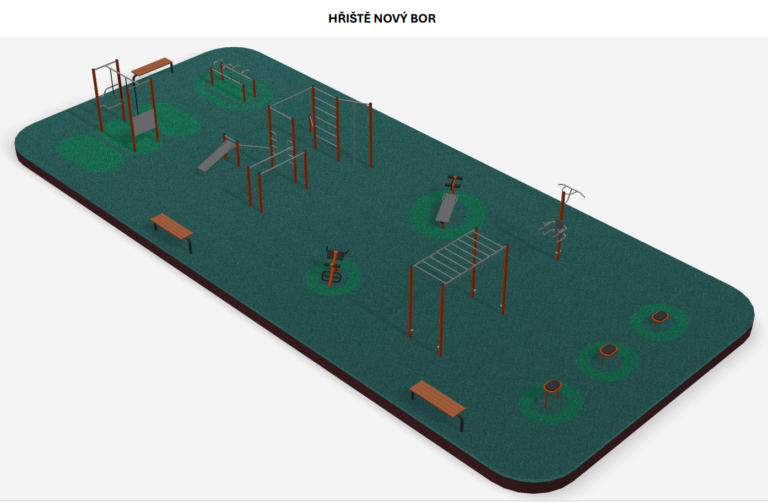 Workoutové hřiště v Novém Boru v Libereckém kraji je bohatě vybaveno. Pyšní se TRX systémem pro zavěšování, lavicí se stálky pro kliky, stepy pro posilování nohou a hýžďových svalů, vertikální lavicí pro posilování břicha, lavicí na sedy lehy a lavicí na posilování dolní části zad. Dále je vybaveno workoutovou sestavou s vodorovným žebříček pro ručkování a workoutovou sestavou s žebřinami, bradly a hrazdami, stěnou pro kliky a přítahy a lavicí na sedy lehy. Hřiště je situováno u místního koupaliště a sportovní haly.