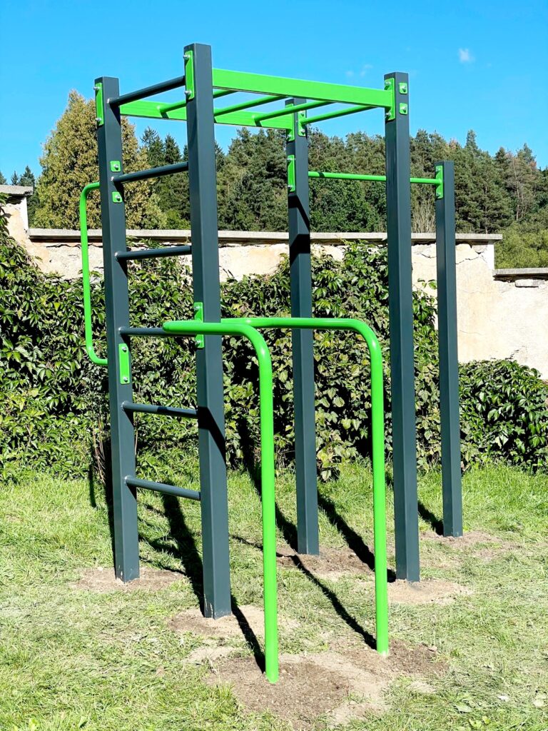 A jak je venkovní posilovna ve Vyšším Brodě vybavena? Zacvičit si s váhou vlastního těla můžete na A-typové workoutové sestavě s hrazdou, žebřinami a bradly. Trénink můžete doplnit o využití fitness strojů. Konkrétně o rozpohybování kloubů na elipsovitém fitness zařízení, kompletní protažení těla na jezdeckém zařízení, posilování ramen a paží v páru na bradlech a v závěru uvolnit svaly pasu a bederní části na relaxačním fitness zařízení.