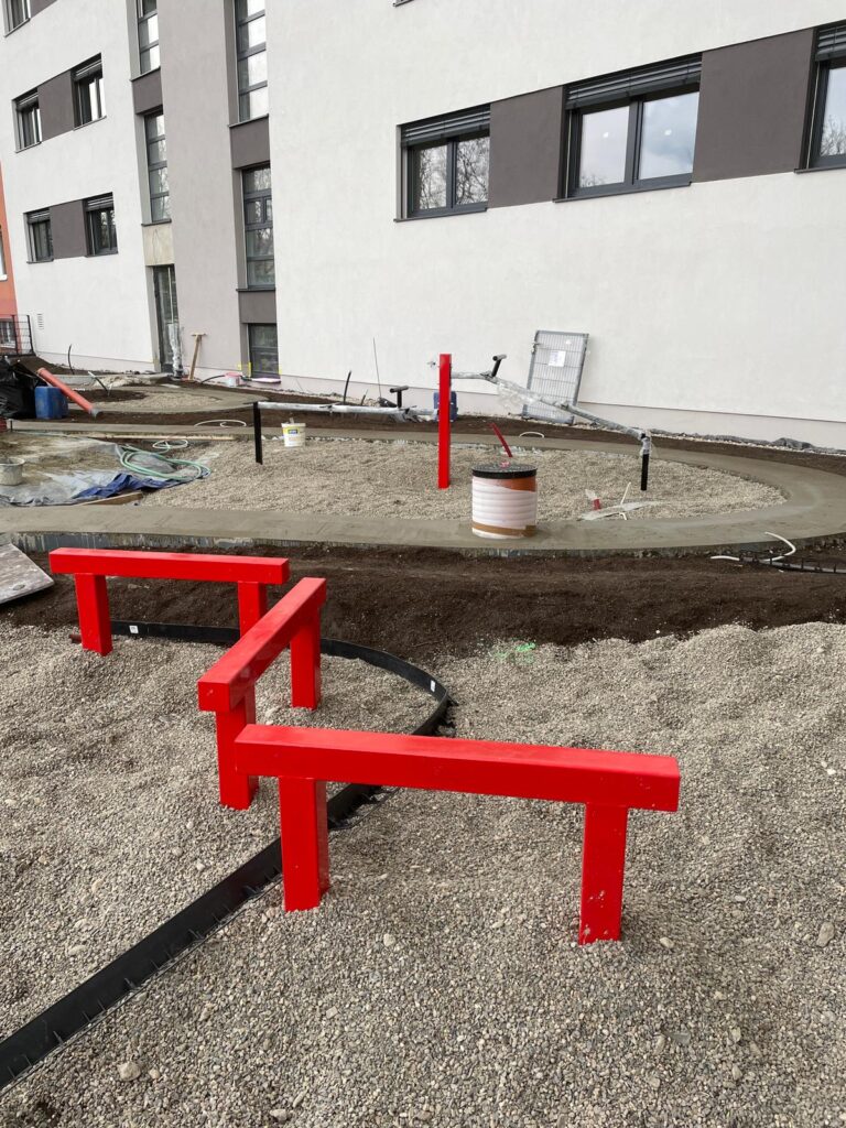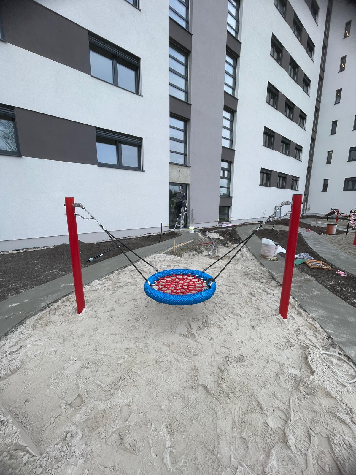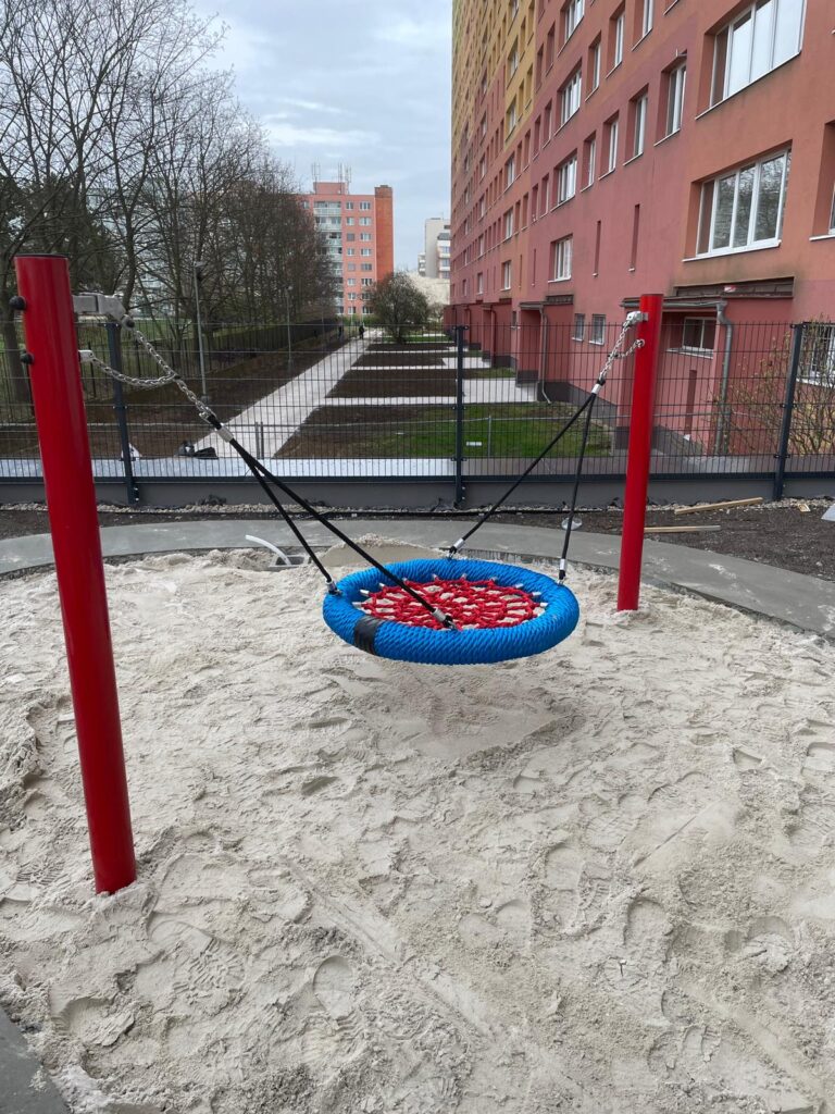 Workoutové moduly a dětská houpačka – hnízdo – v areálu společnosti Skanska, v Praze v ulici Křižíkova, nabízí pracovníkům workoutové cvičení na základních prvcích jako jsou hrazdy a žebřiny, sestava kladin pak dává prostor pro rozvoj koordinace a rovnováhy.