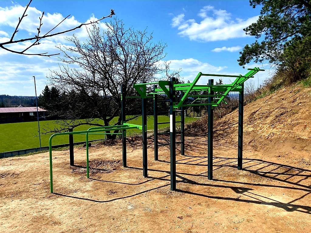 Na tomto workoutovém hřišti si může zacvičit v přírodě každý.