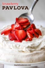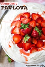 Serve the pavlova immediately – Although you can make the baked meringue ahead of time, don’t top it with the cream and strawberries until just before serving. If you do add it to far in advance, it will still be delicious, but the meringue could get soggy.