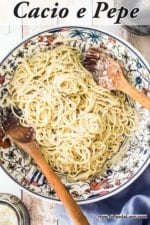 Tonnarelli Cacio e Pepe has simple, but important steps to achieve authentic taste and texture. No butter or cream is used, just Pecorino Romano cheese and freshly ground black peppercorns. Tonnarelli pasta is classic, but plain spaghetti works wonderfully, too. Start with a classic Caesar salad and finish the meal with homemade tiramisu for an Italian feast you won’t soon forget.